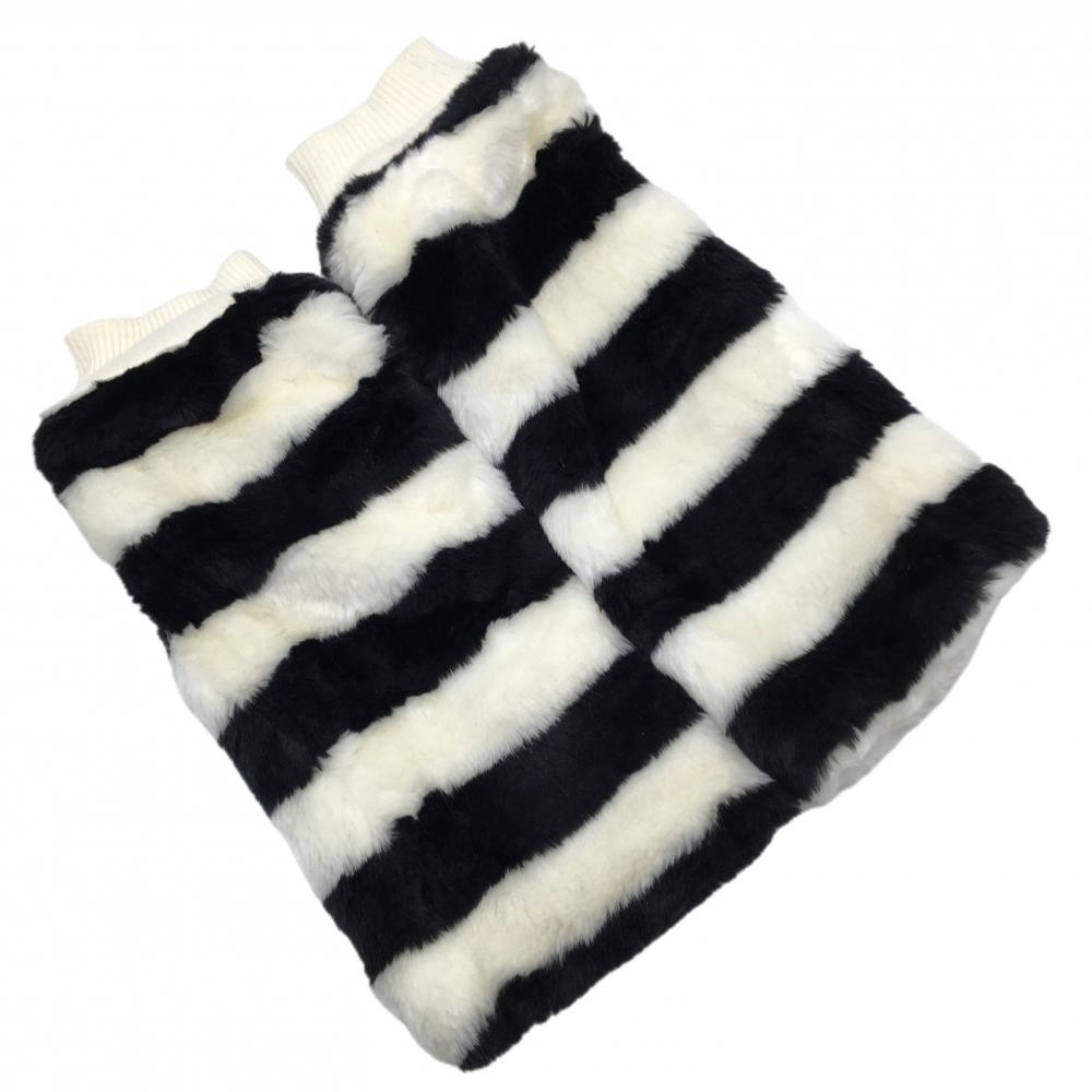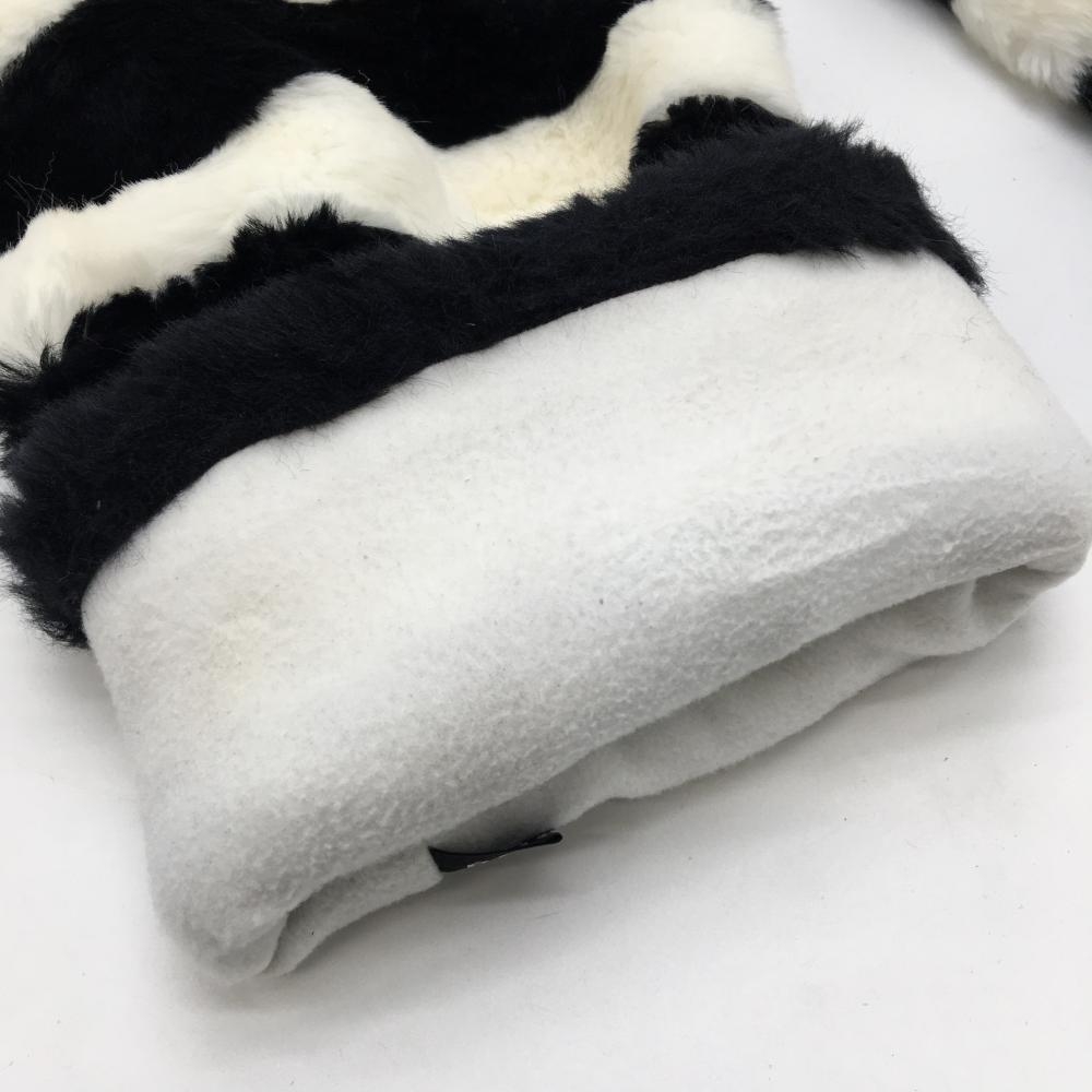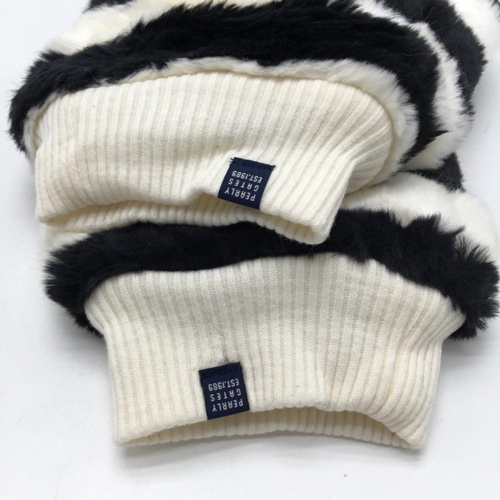 【美品】パーリーゲイツ レッグウォーマー 白×黒 ボーダー ファー レディース ゴルフウェア PEARLY GATES