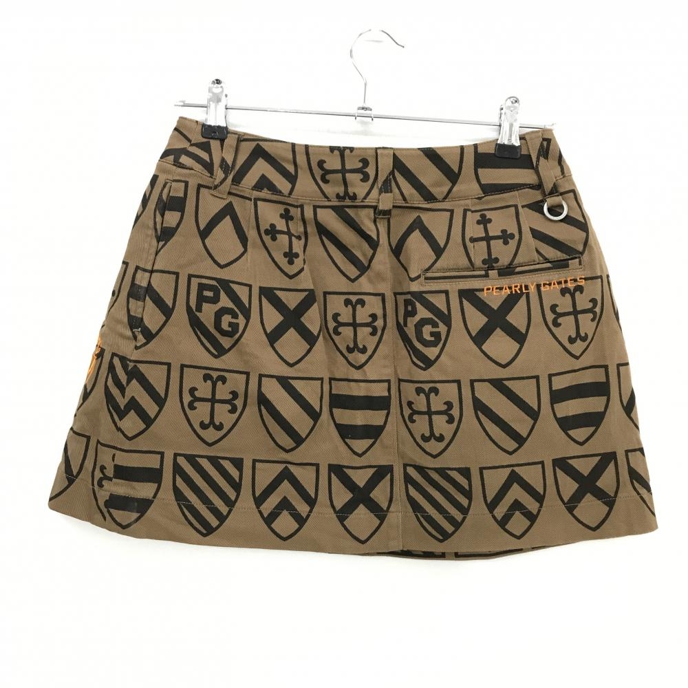 【美品】パーリーゲイツ スカート ライトブラウン×ブラウン 総柄 インナーパンツ付き レディース 1(M) ゴルフウェア PEARLY GATES