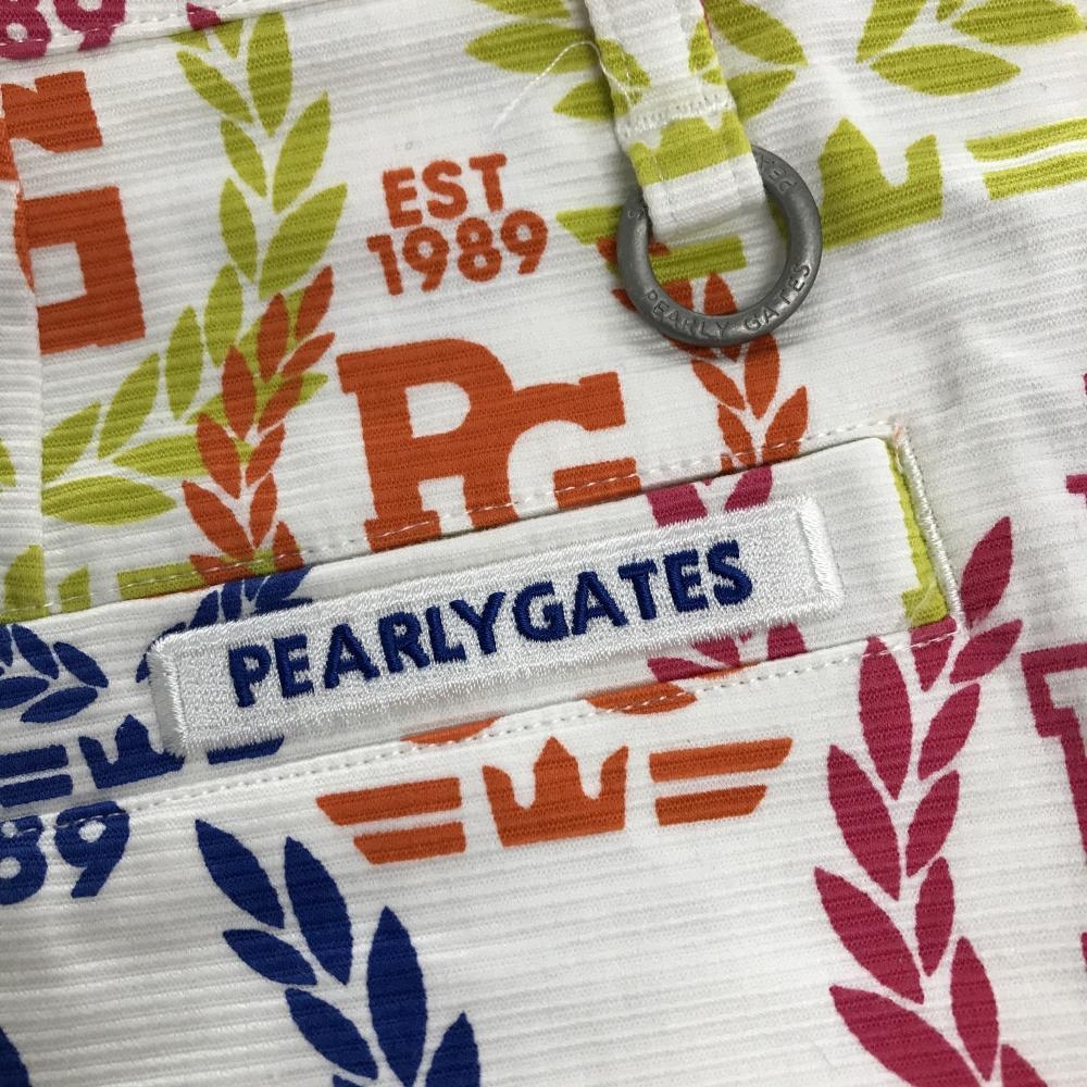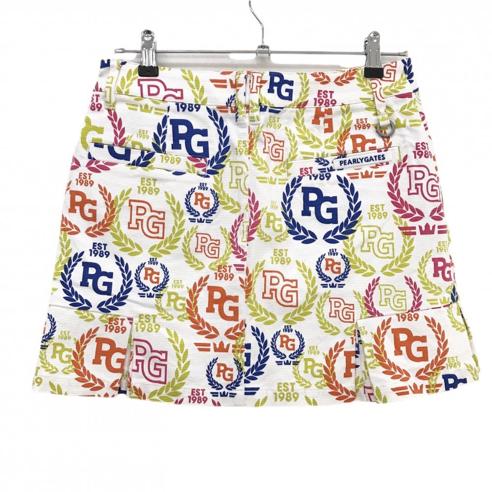 【超美品】パーリーゲイツ スカート 白×マルチカラー ロゴ総柄 レディース 1(M) ゴルフウェア PEARLY GATES