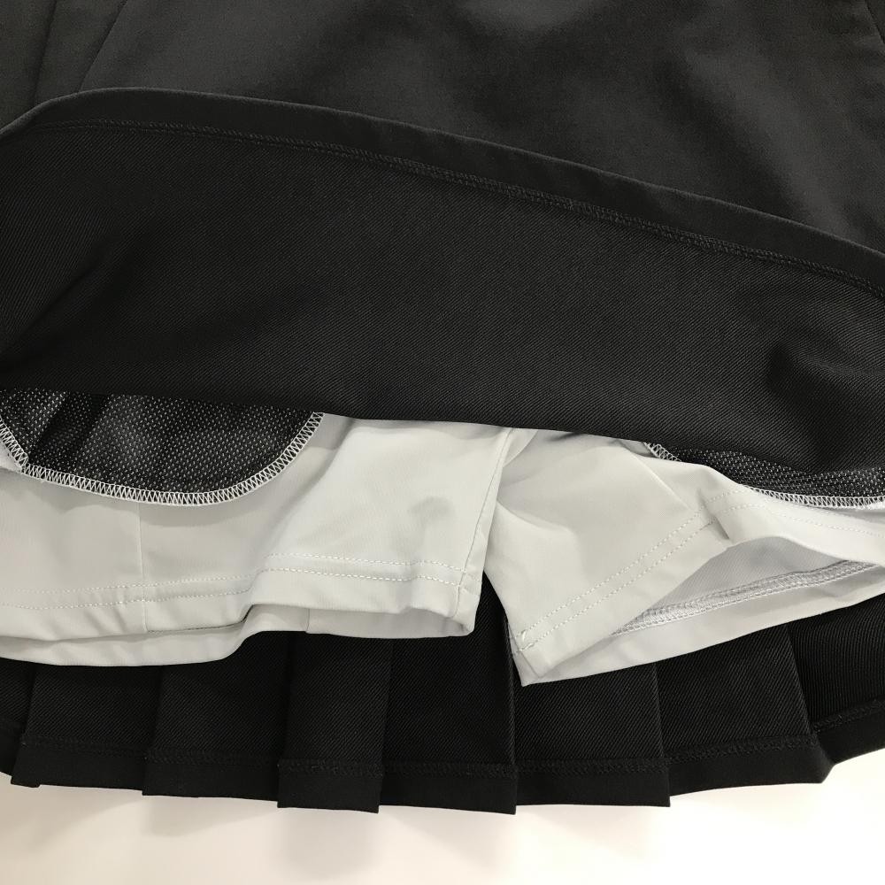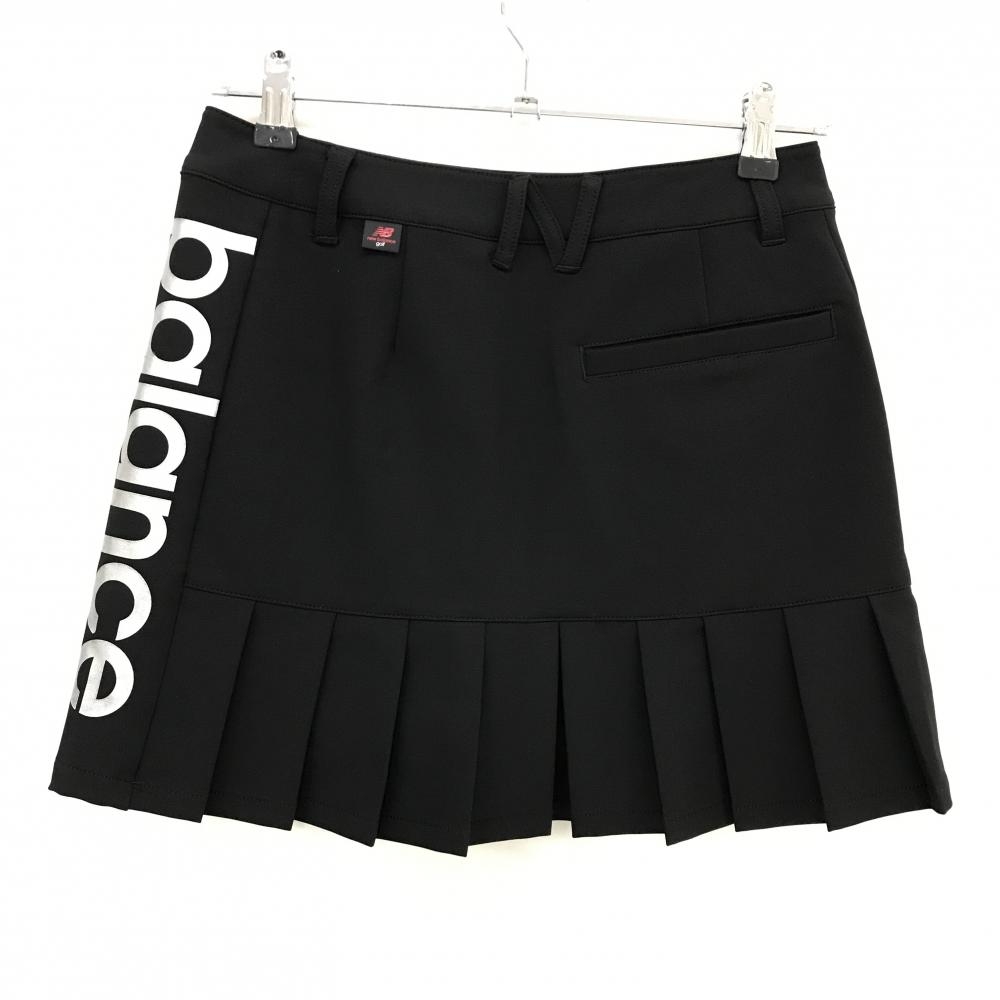 【超美品】ニューバランスゴルフ スカート 黒 ロゴシルバー 背面裾プリーツ ストレッチ レディース 0(S) ゴルフウェア New Balance