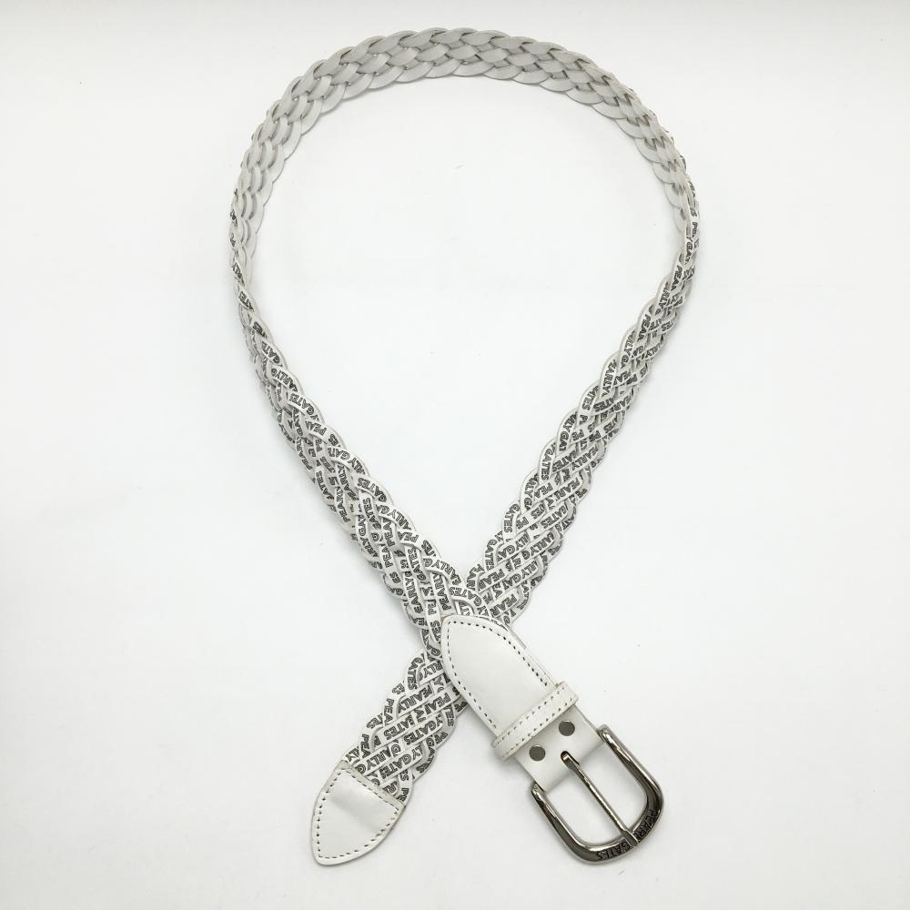 【美品】パーリーゲイツ 編み込みベルト 白×黒 ロゴ総柄 メンズ ゴルフウェア PEARLY GATES