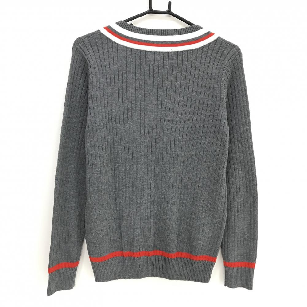 ルコック セーター グレー×白×レッド Vネック レディース LL ゴルフウェア le coq sportif