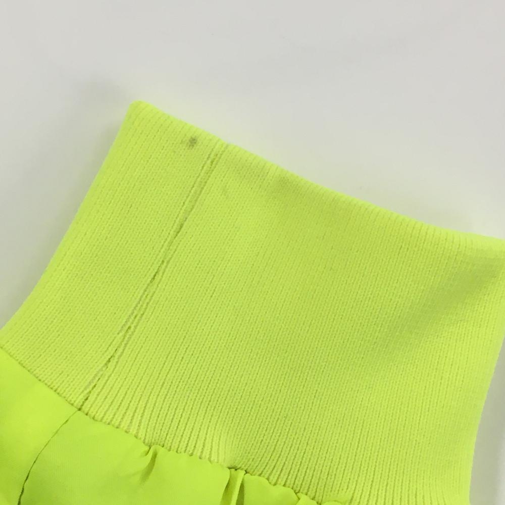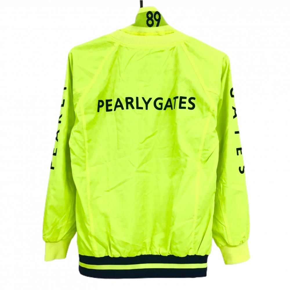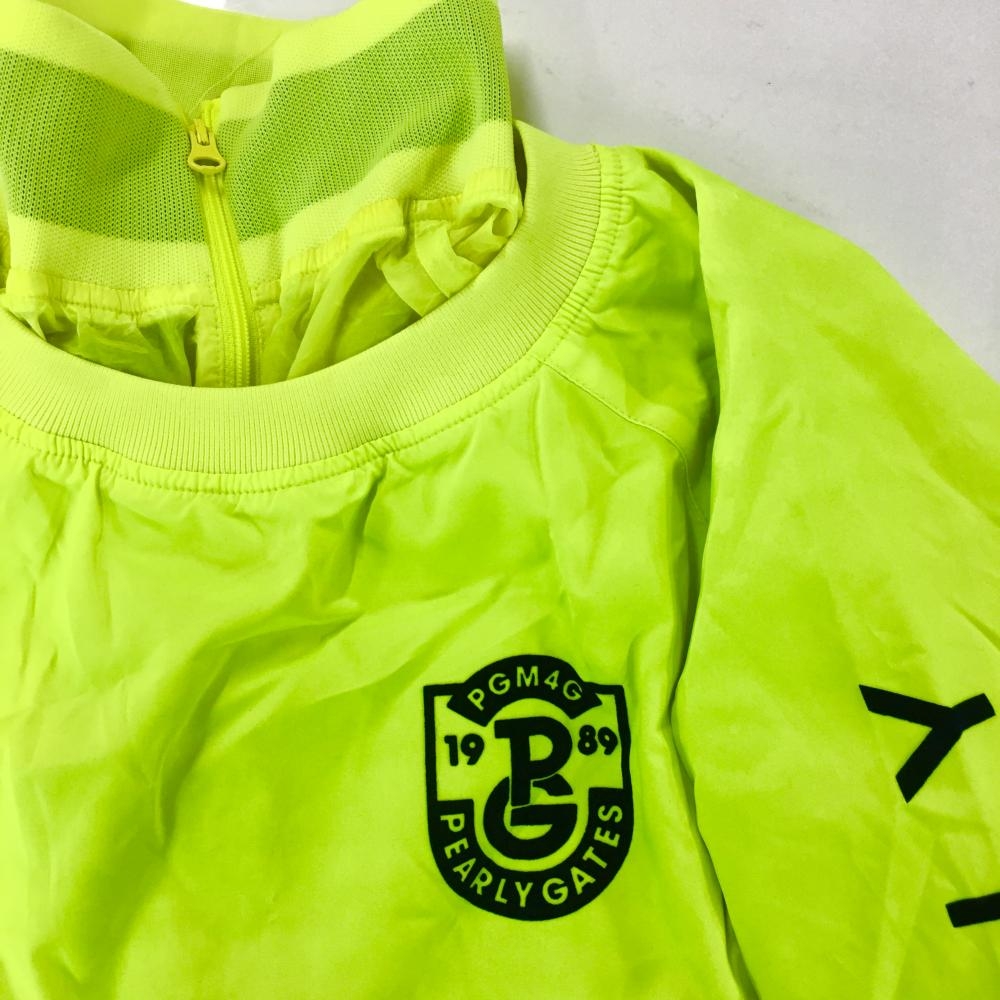 【美品】パーリーゲイツ ツインスニード 蛍光イエロー×ネイビー フロッキーロゴ 蓄熱裏地 レディース 0(S) ゴルフウェア PEARLY GATES
