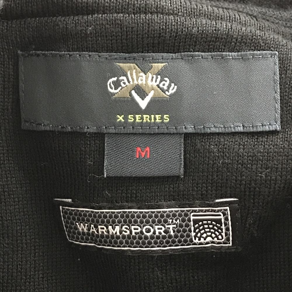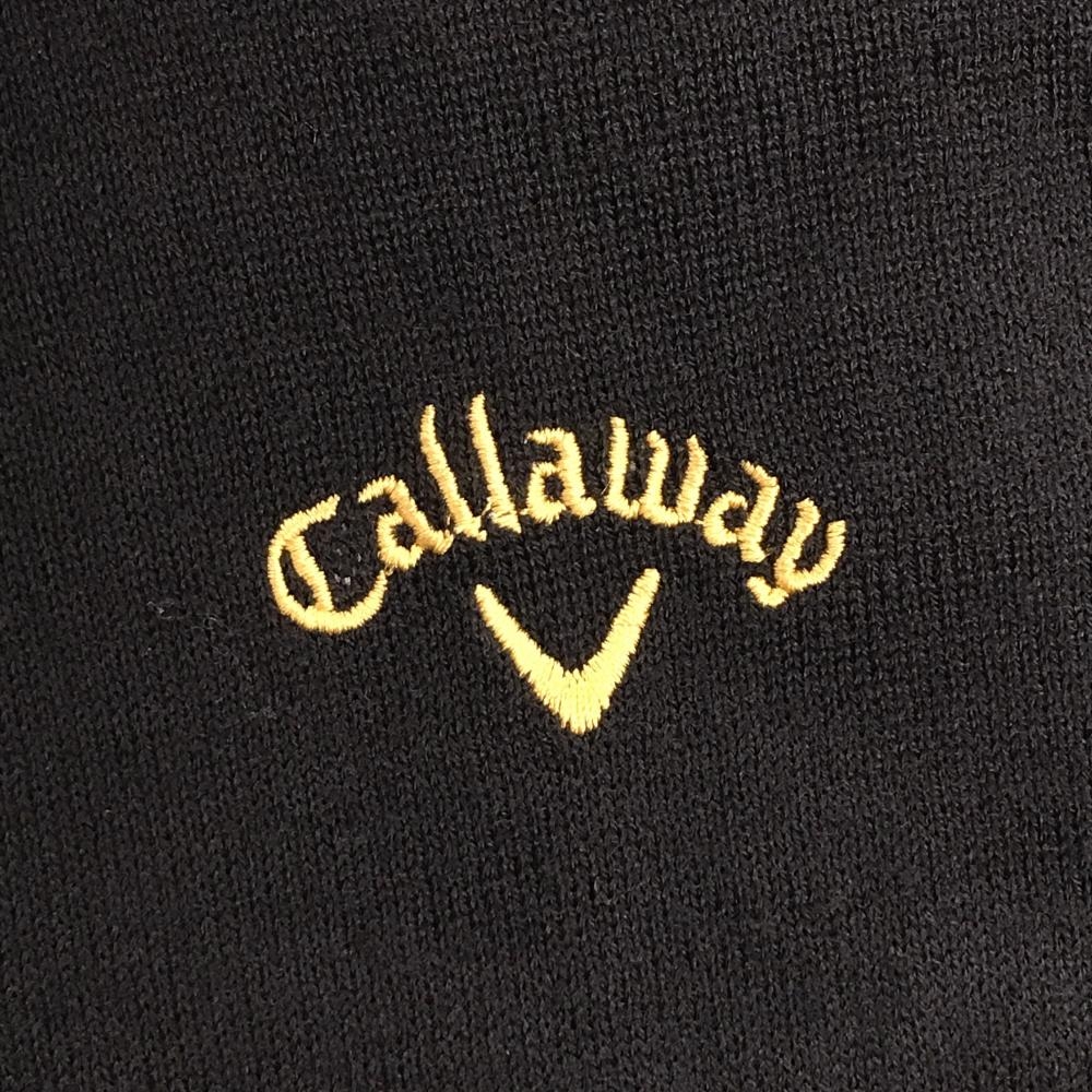 【超美品】キャロウェイ ニットジップパーカー 黒×ゴールド ロゴ刺しゅう 薄手 レディース M ゴルフウェア Callaway