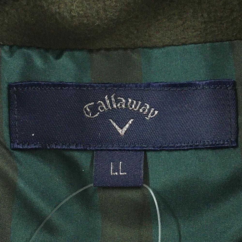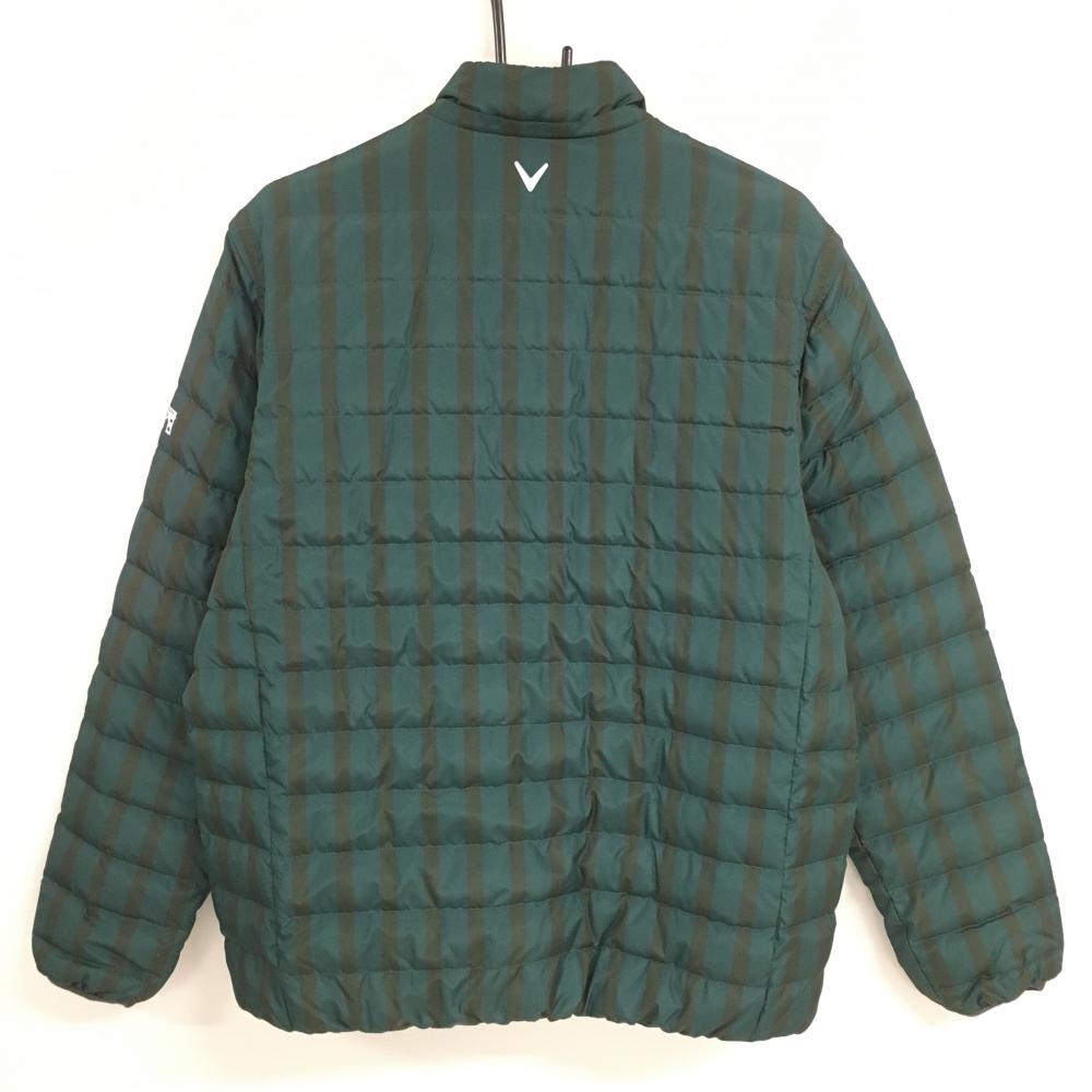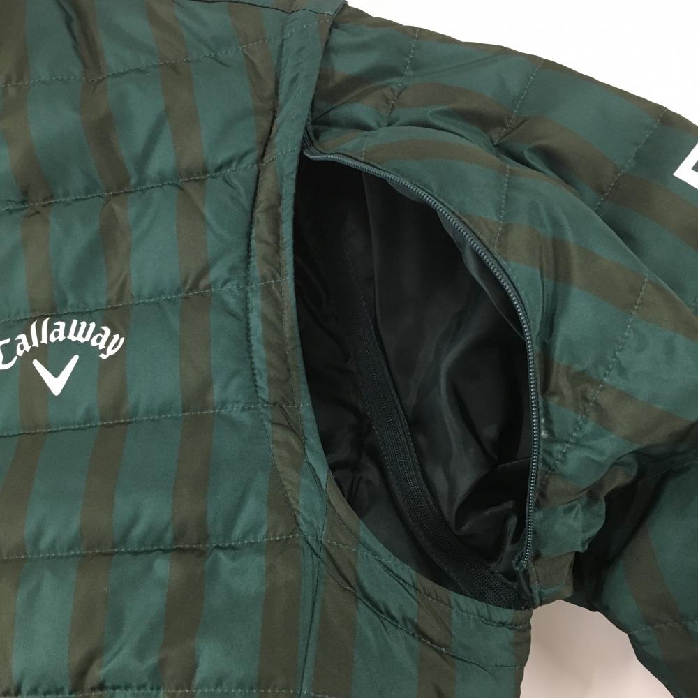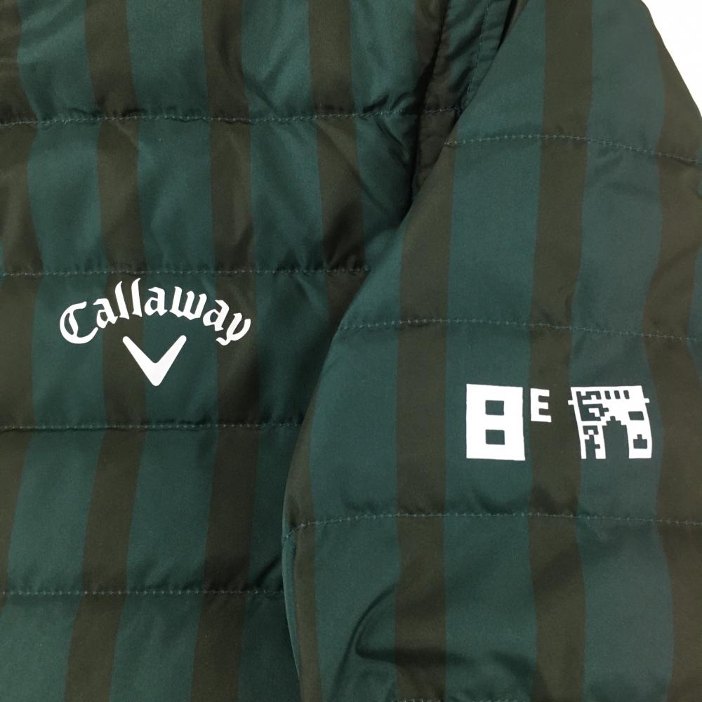 【美品】キャロウェイ 2WAYダウンジャケット グリーン×カーキ ストライプ 襟裏フリース 軽量 袖着脱可 メンズ LL ゴルフウェア Callaway