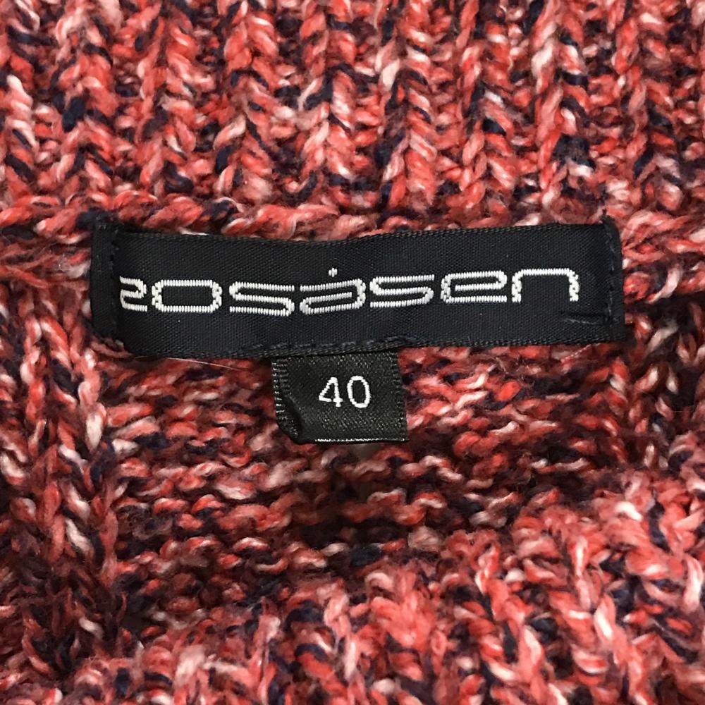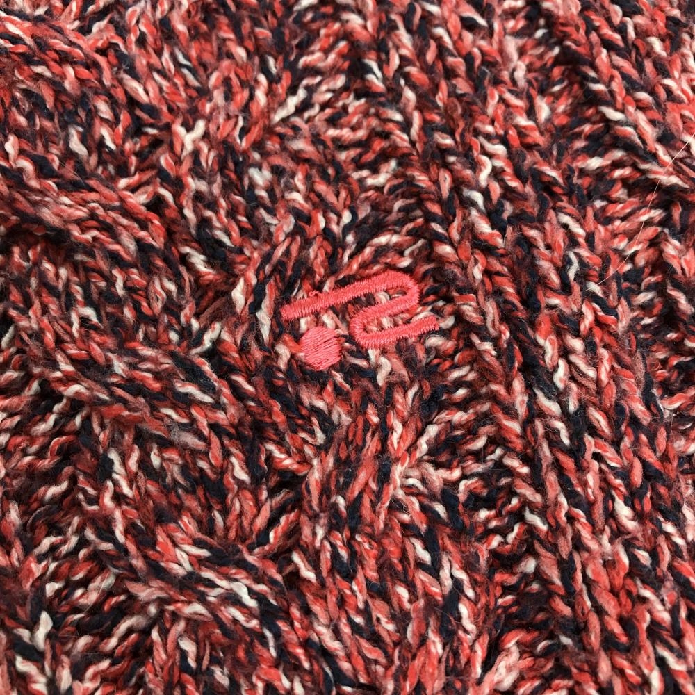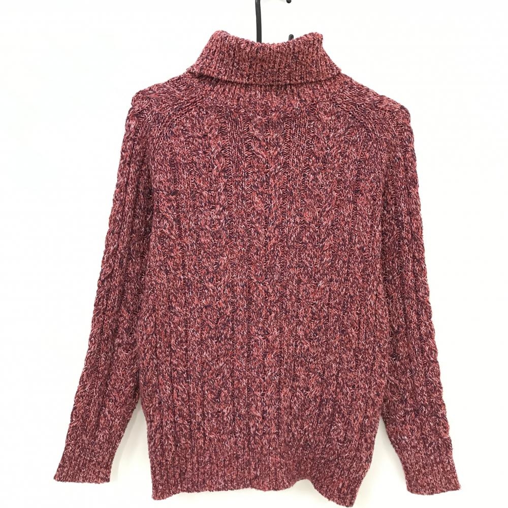 【超美品】ロサーセン タートルネックセーター レッド×ネイビー ケーブル編み ニット レディース M ゴルフウェア Rosasen