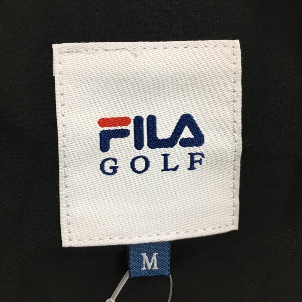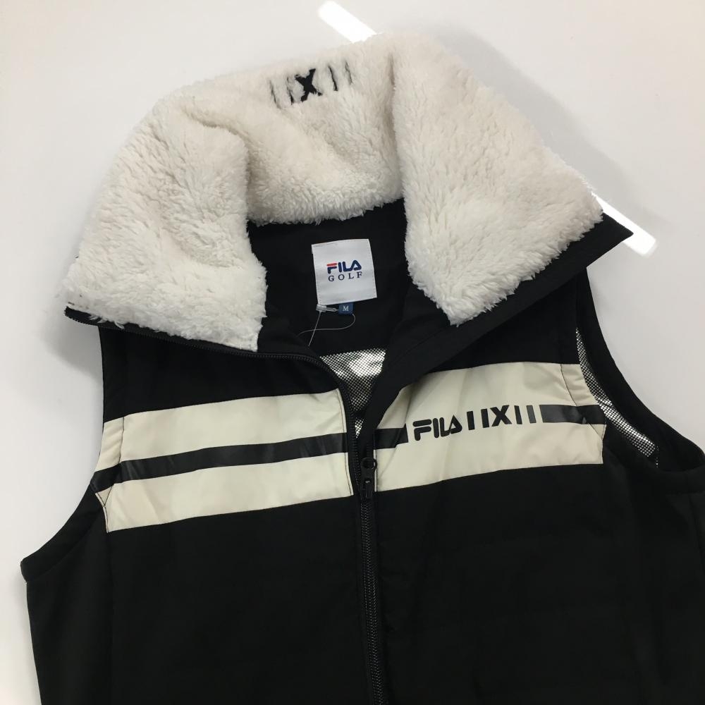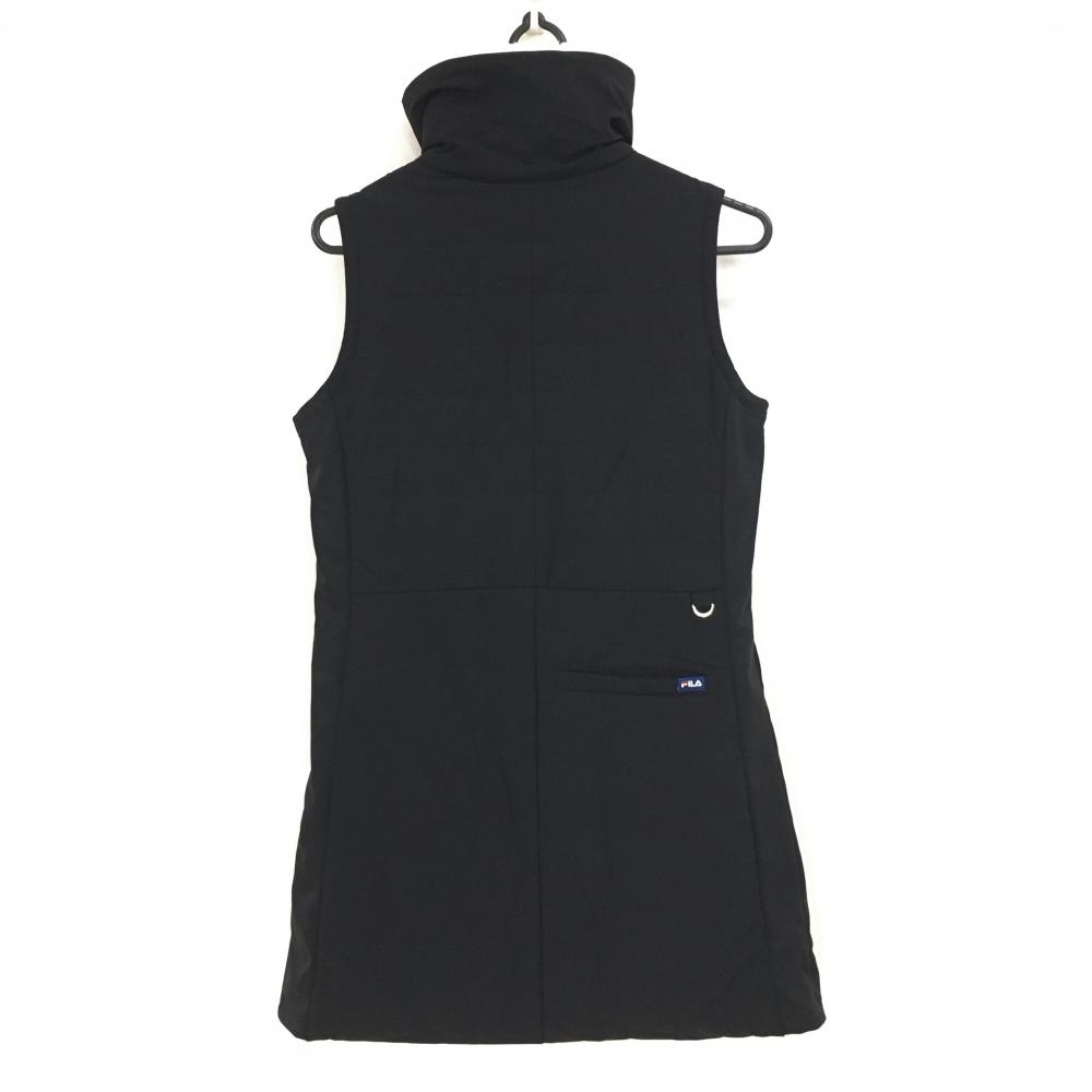 【超美品】フィラゴルフ 中綿ノースリーブワンピース 黒×白 胸元ロゴ ネック内側ボア レディース M ゴルフウェア FILA GOLF