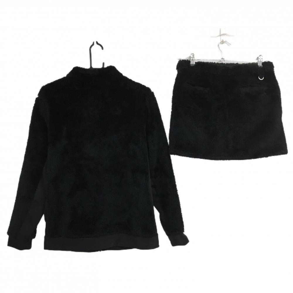 【美品】アディダス セットアップ(ボアジャケット×ボアスカート) 黒×白 肩・袖3ライン スカート レディース OT ゴルフウェア adidas