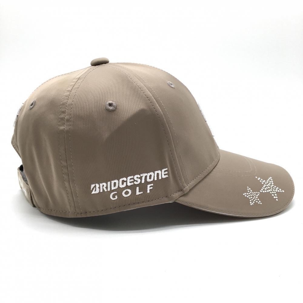 【新品】ブリヂストン キャップ ブラウン×白 つば星 ラインストーン レディース フリーサイズ(約54-58cm) ゴルフウェア Bridgestone