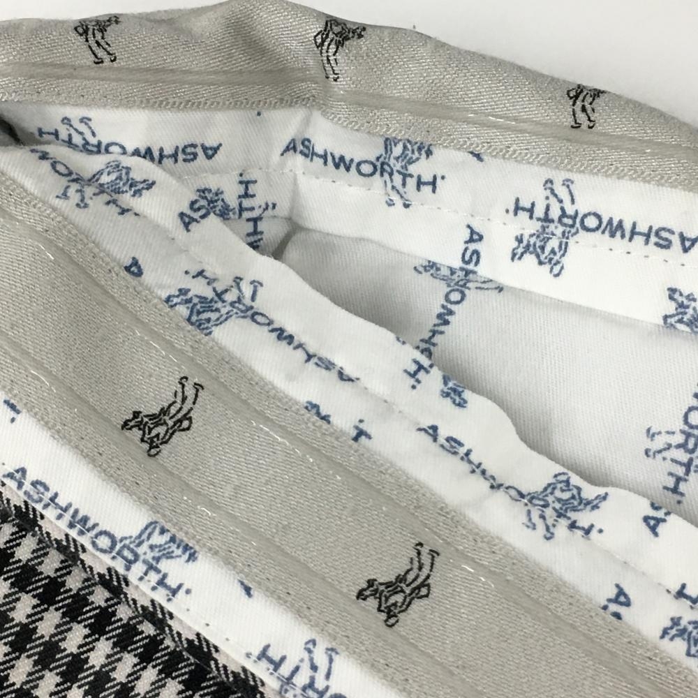 【美品】アシュワース パンツ 白×ネイビー系 ギンガムチェック ストレッチ メンズ 82 ゴルフウェア ASHWORTH