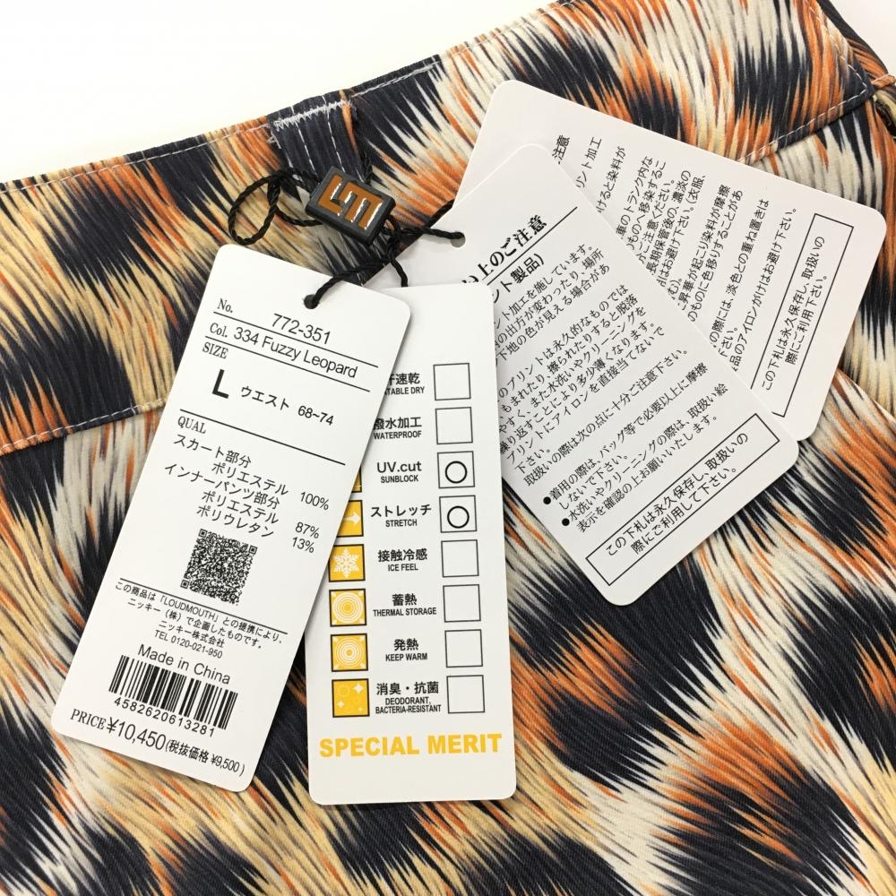 【新品】ラウドマウス スカート 黒×オレンジ ファジーレオパード 内側インナーパンツ レディース L ゴルフウェア LOUDMOUTH