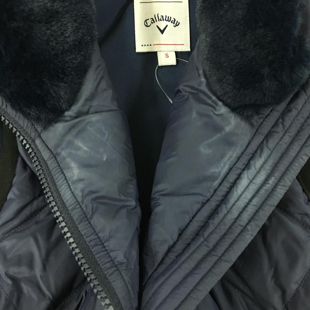 キャロウェイ ダウンノースリーブワンピース ネイビー ネック裏ファー レディース S ゴルフウェア Callaway