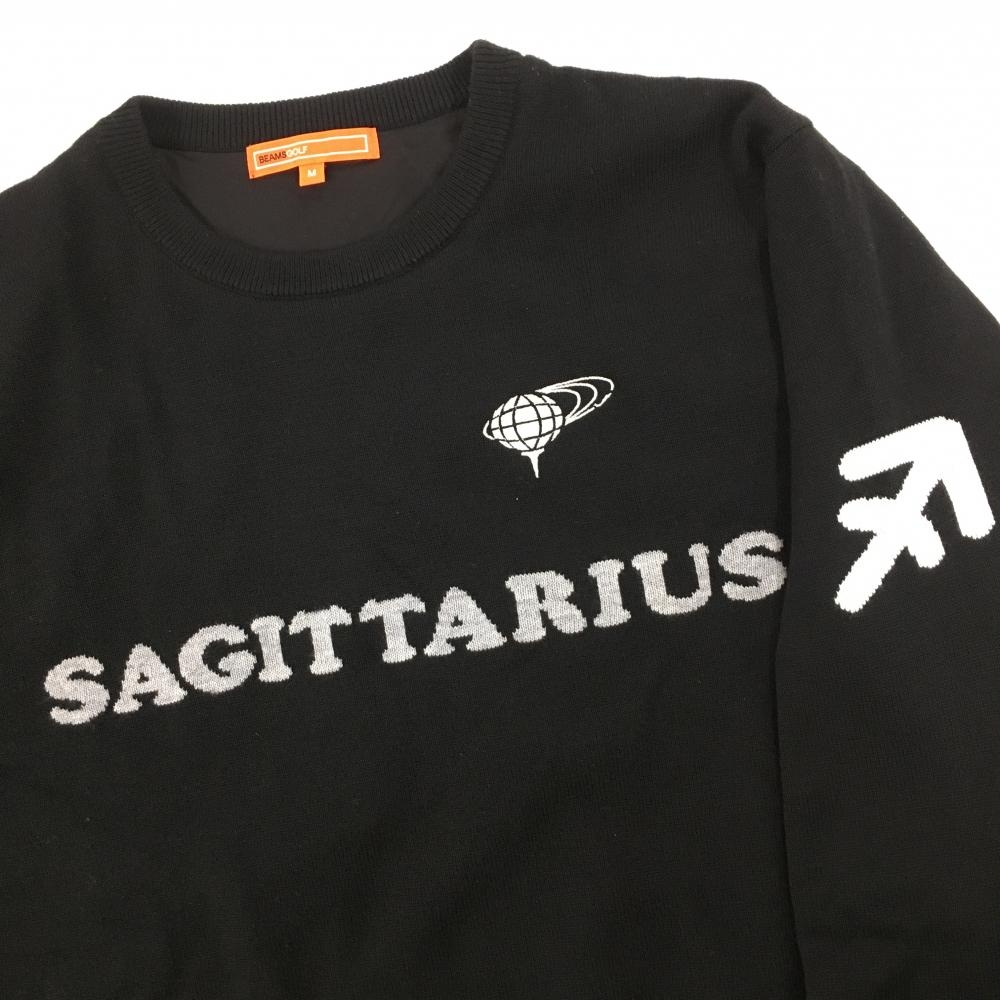 【美品】ビームスゴルフ セーター 黒×グレー フロント英字 裏地付 ニット メンズ M ゴルフウェア BEAMS GOLF