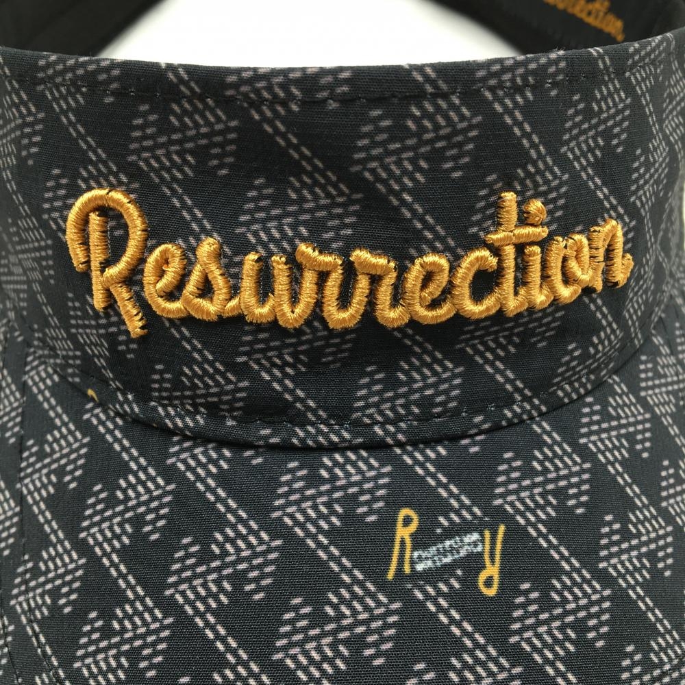 【超美品】レザレクション サンバイザー 黒×グレー 総柄 ロゴ刺しゅう ONE SIZE ゴルフウェア Resurrection