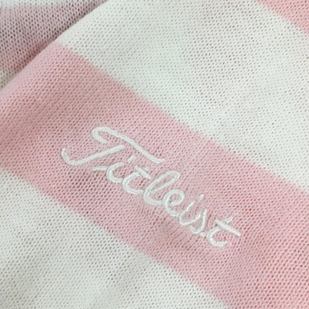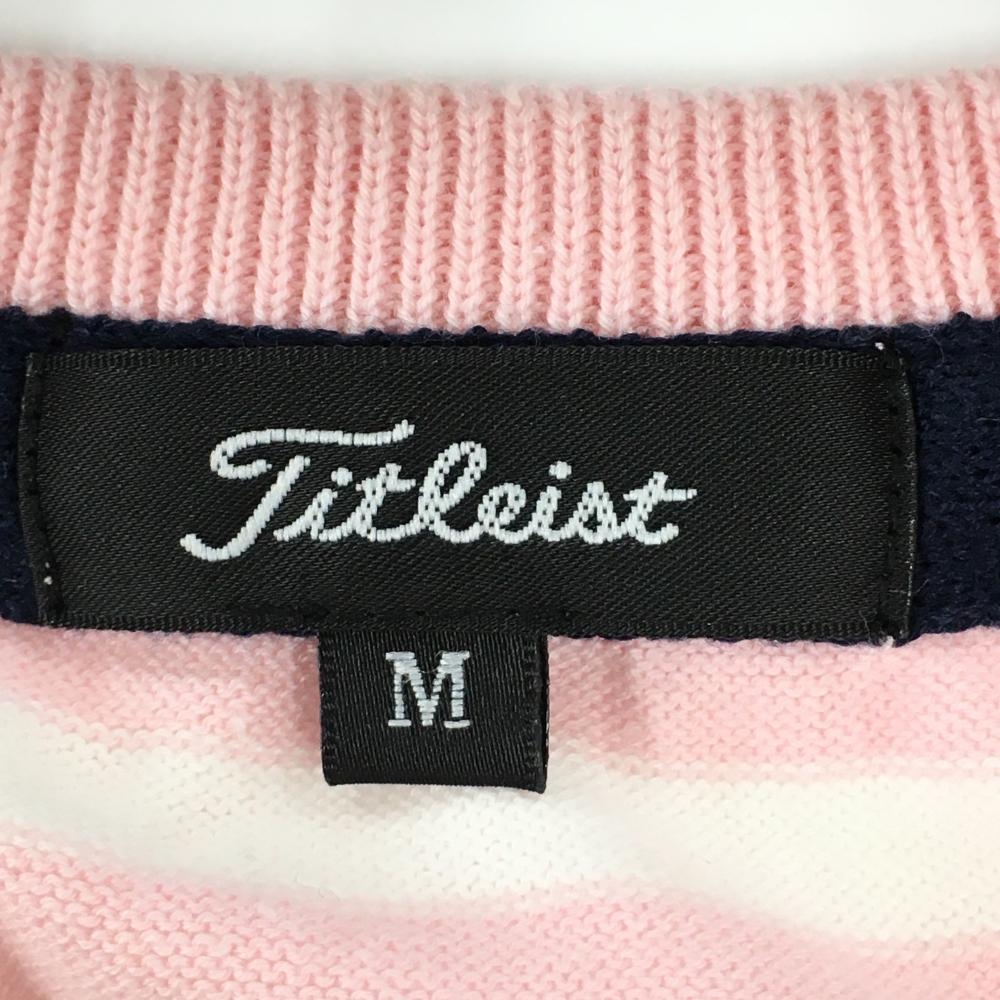 【美品】タイトリスト セーター ピンク×白 ボーダー Vネック ニット レディース M ゴルフウェア TITLEIST