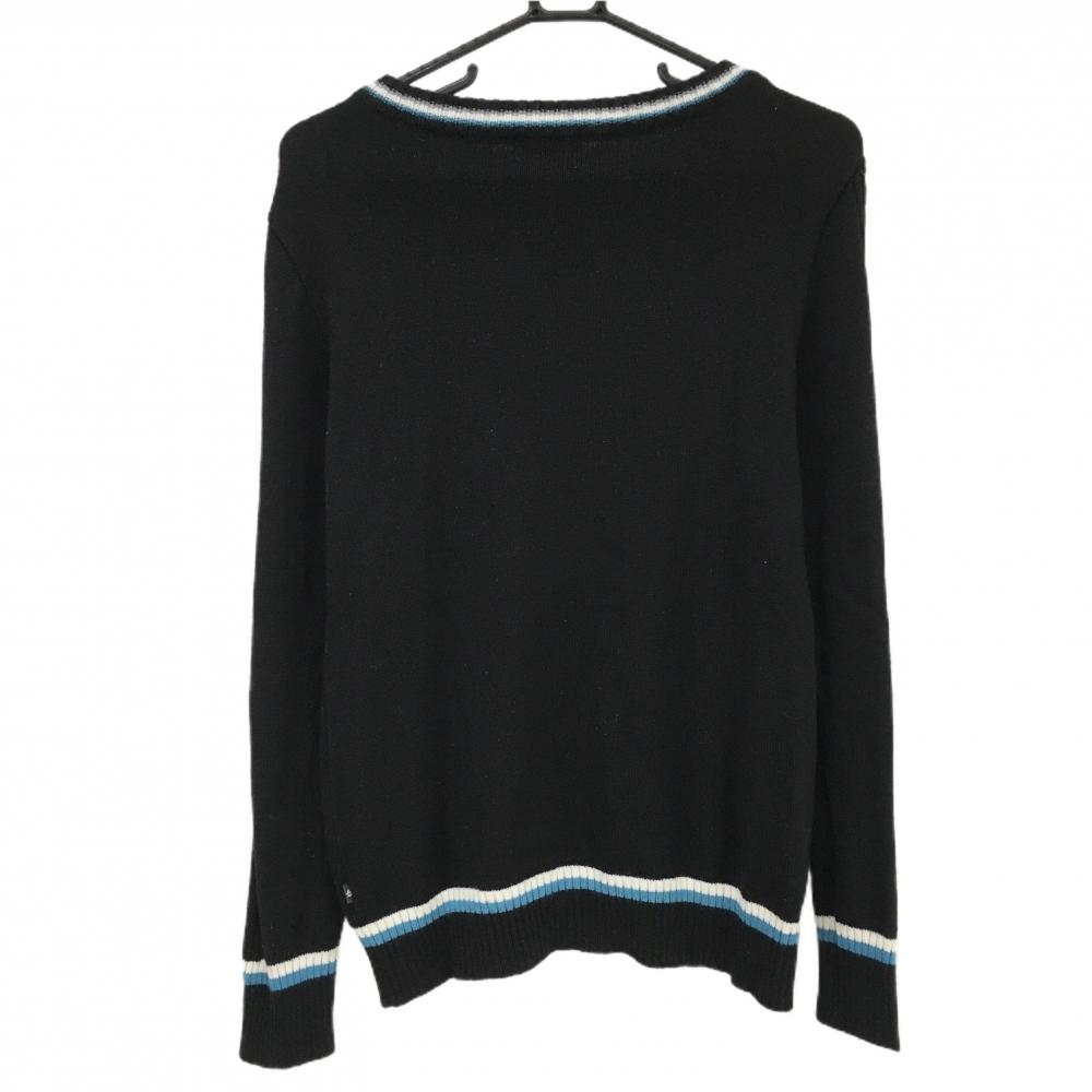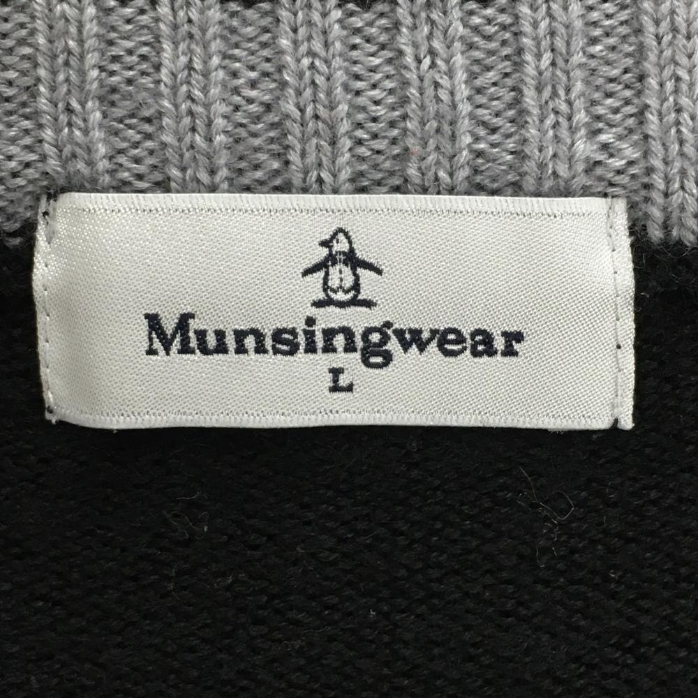【美品】マンシングウェア セーター 黒×白×ライトブルー 一部ケーブル編み ニット ウール混 レディース L ゴルフウェア Munsingwear