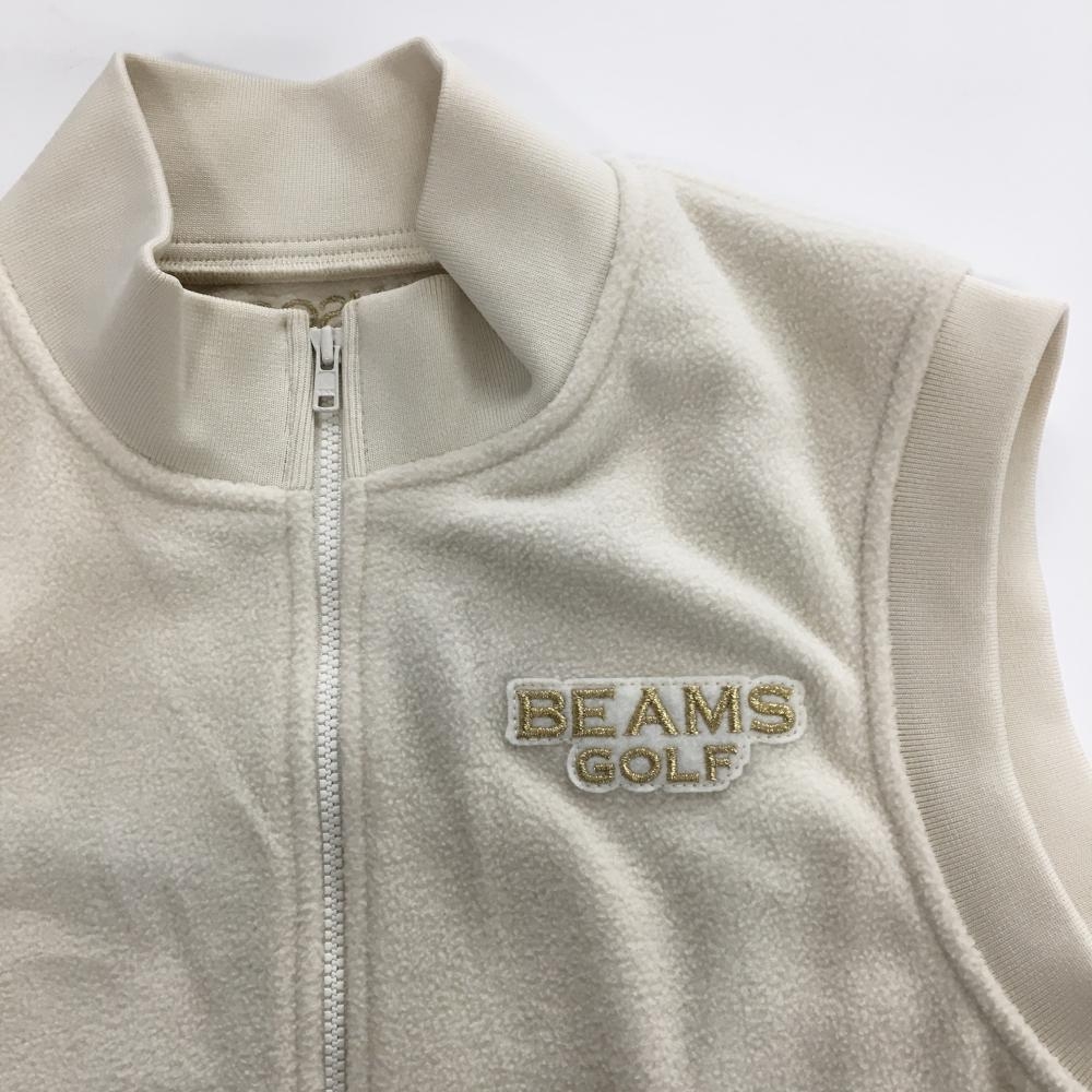 【超美品】ビームスゴルフ フリースベスト ライトベージュ ロゴ刺しゅう レディース L ゴルフウェア 2023年モデル BEAMS GOLF