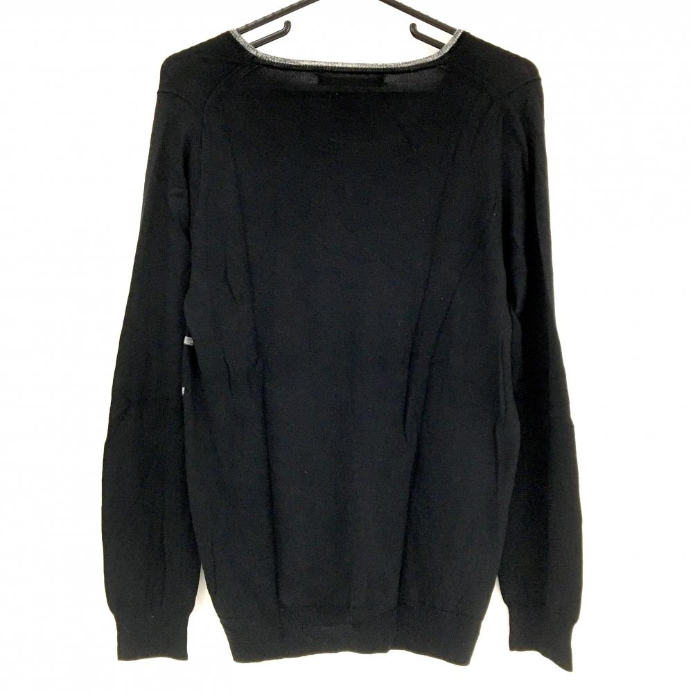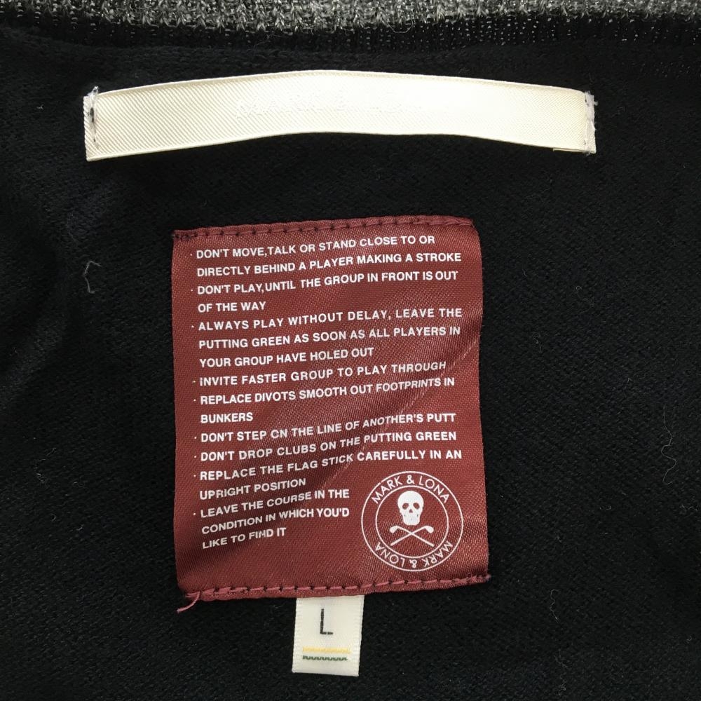【超美品】マークアンドロナ セーター 黒×シルバー ×ボーダー×スカル Vネック ニット メンズ L ゴルフウェア MARK&LONA