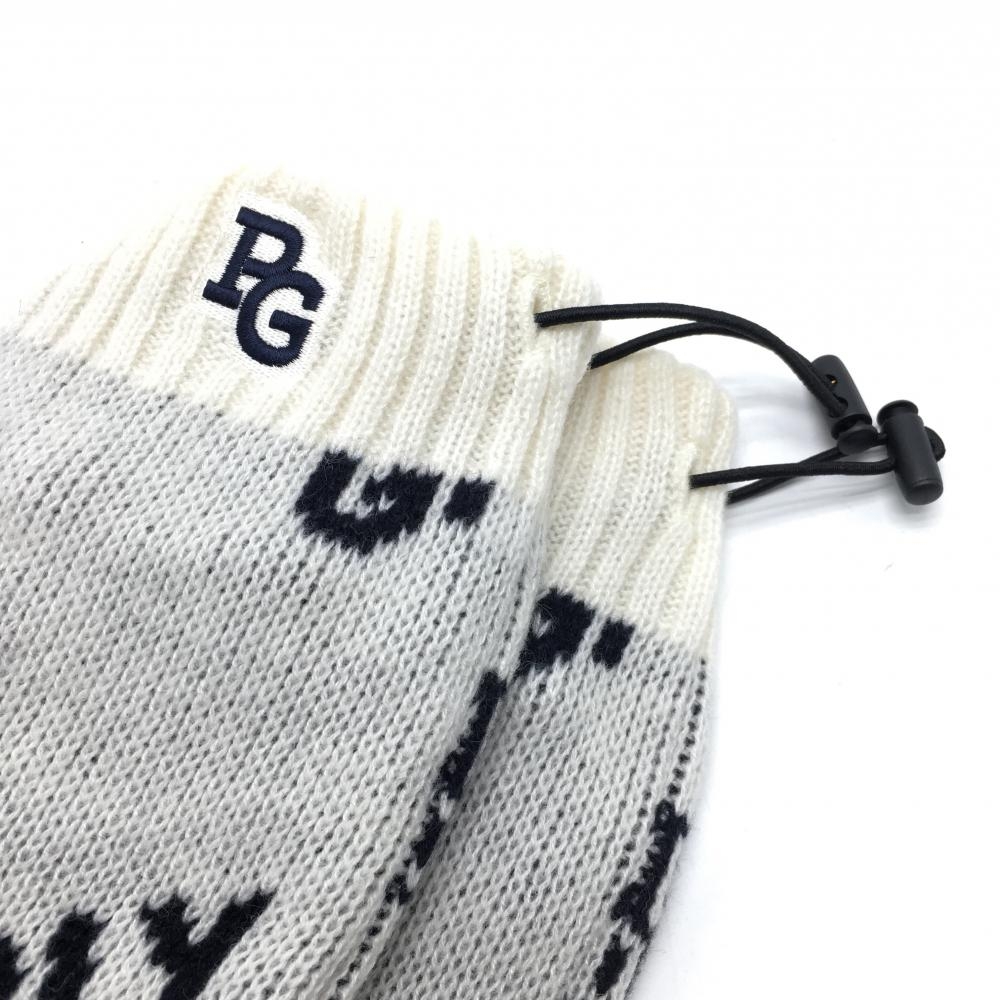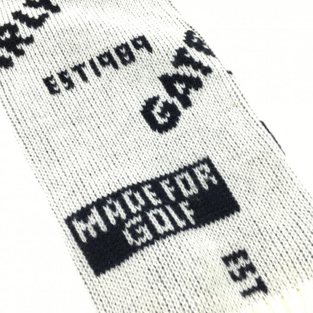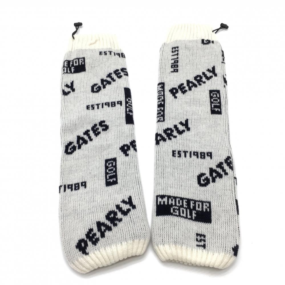 【超美品】パーリーゲイツ ニットレッグウォーマー 白×黒 ロゴ総柄 ドローコード レディース FR ゴルフウェア PEARLY GATES