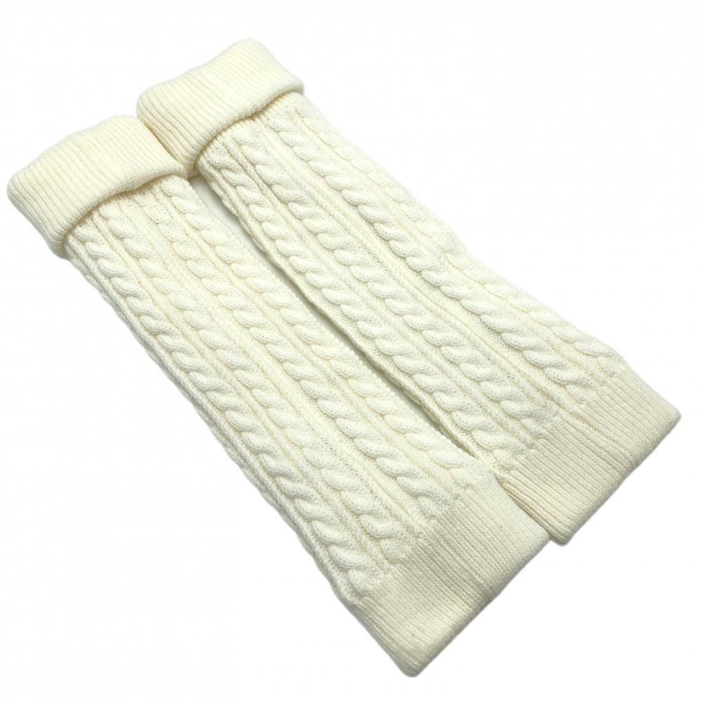 【超美品】ジャックバニー ニットレッグウォーマー 白 ケーブル編み 内側フリース レディース FR ゴルフウェア 2024年モデル Jack Bunny