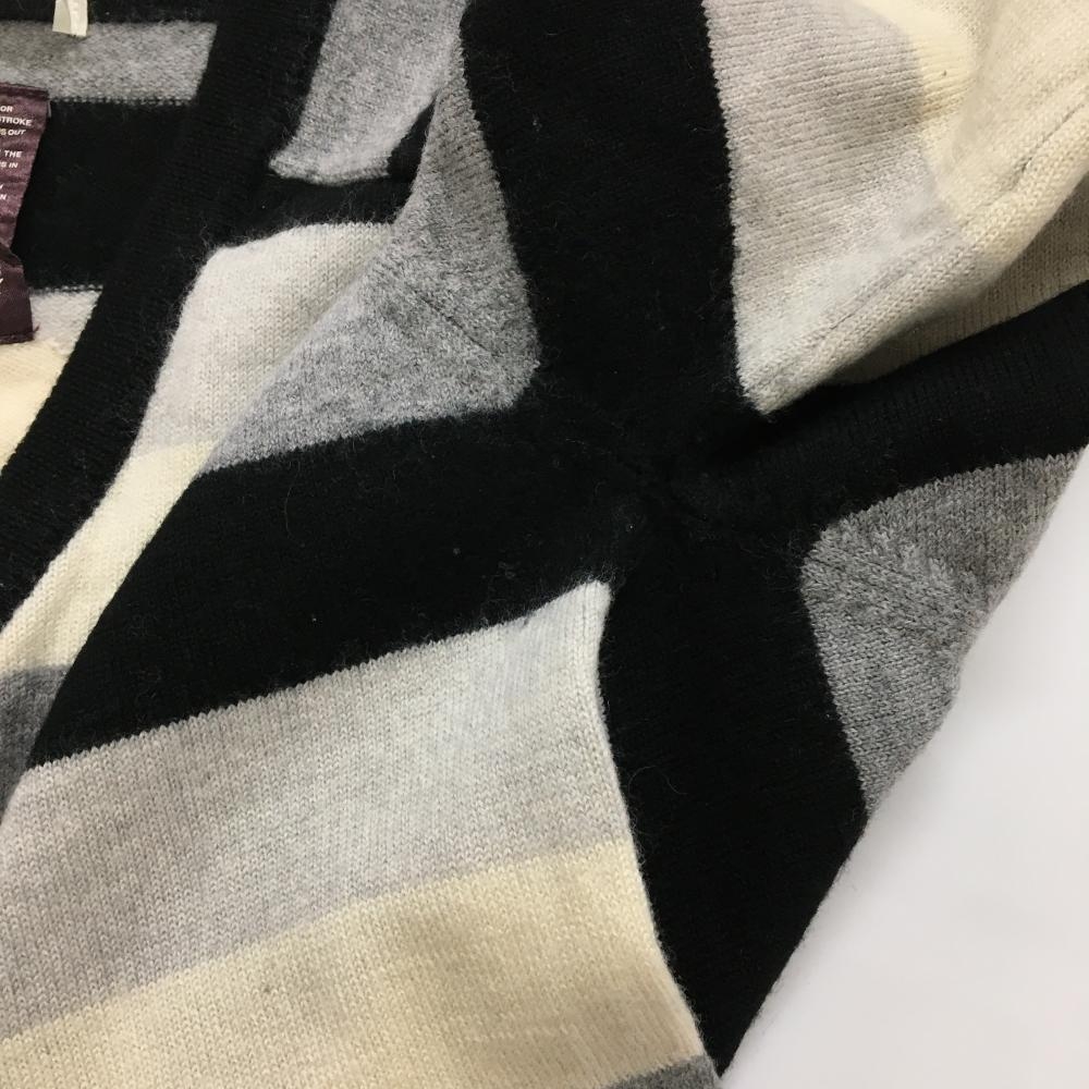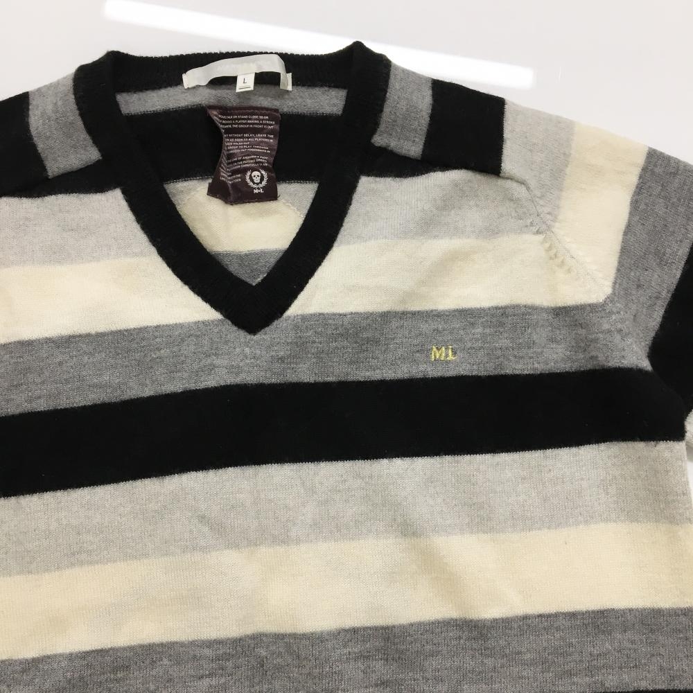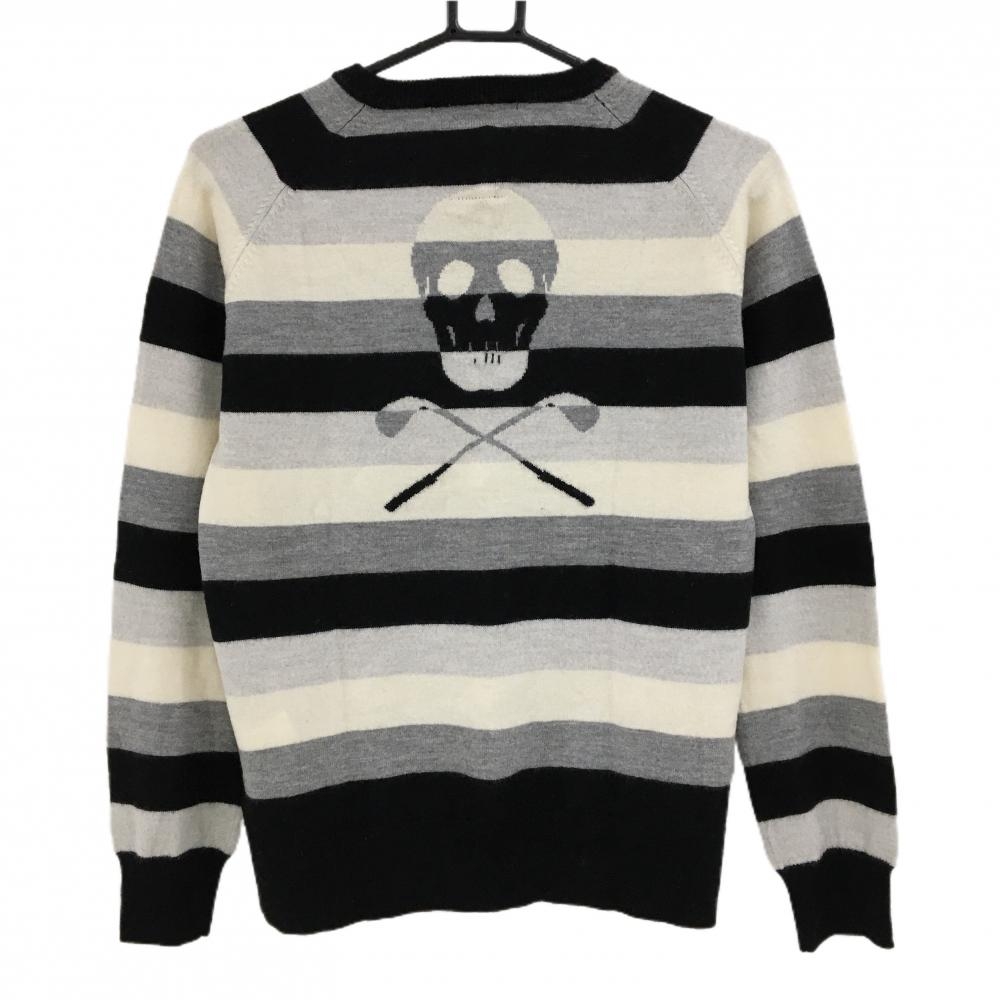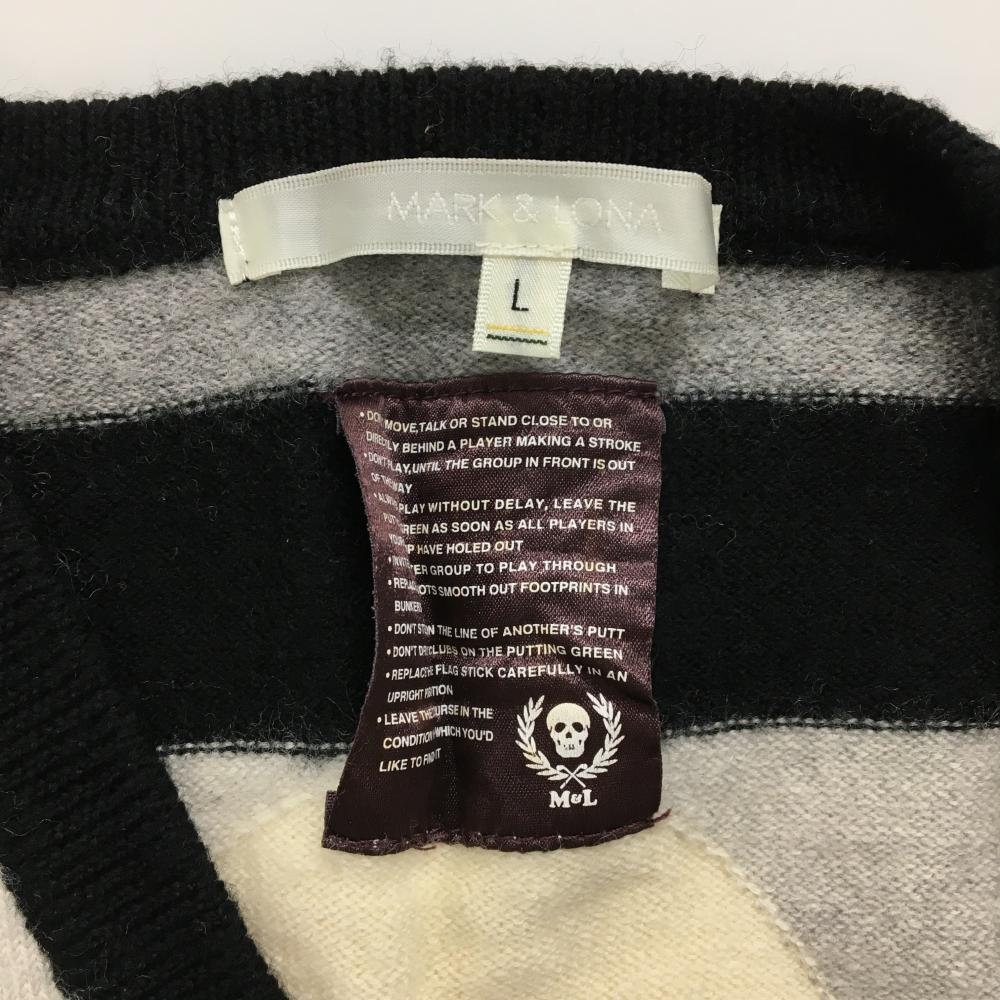 【美品】マークアンドロナ セーター 黒×白×グレー ボーダー Vネック スカル ニット レディース L ゴルフウェア MARK&LONA