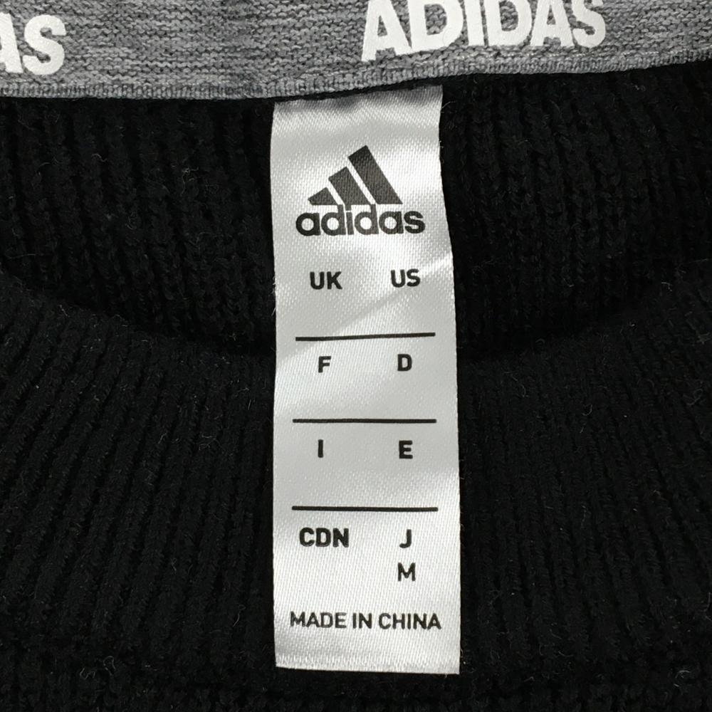 アディダス セーター 黒×白 袖3ストライプス ウール混 ニット レディース M ゴルフウェア adidas