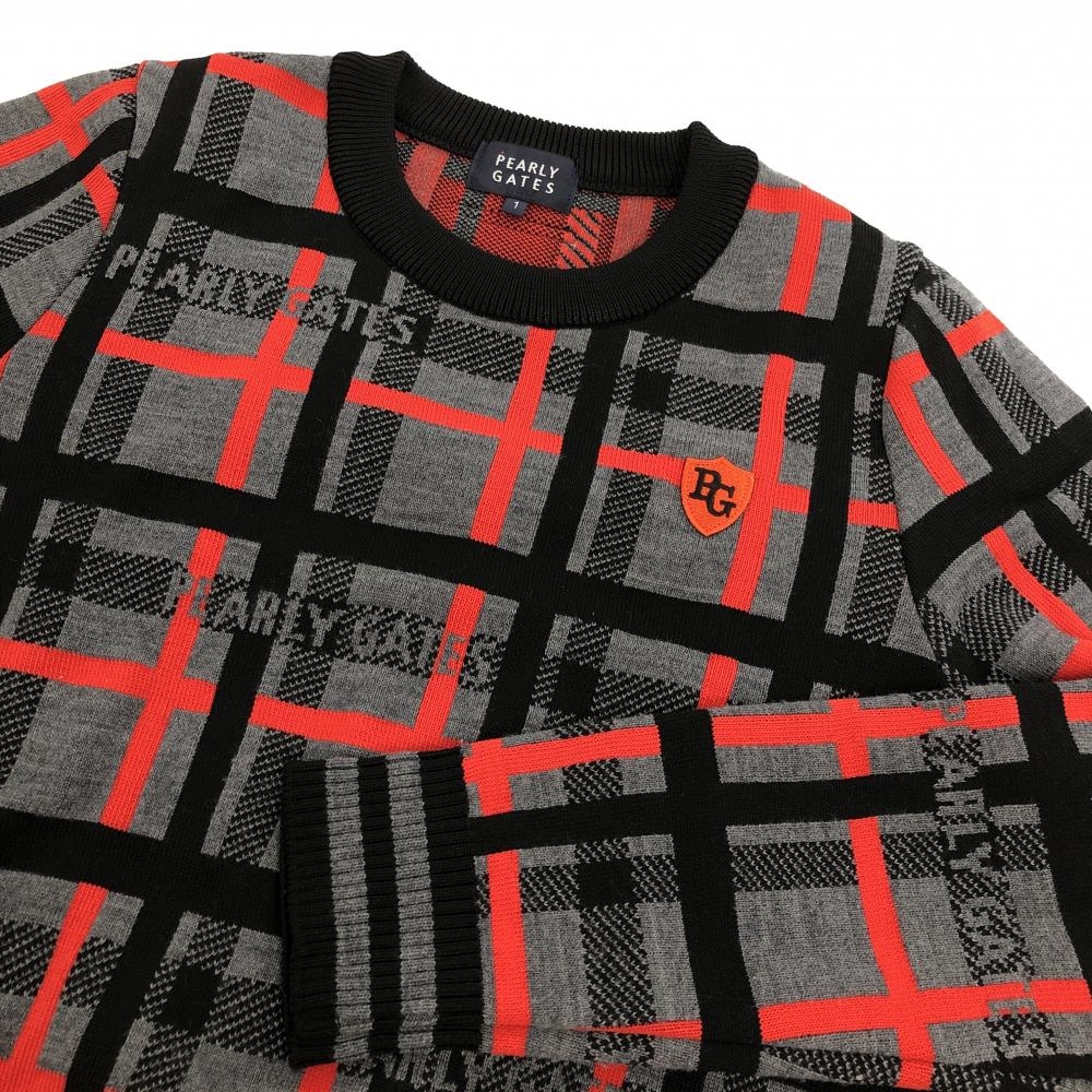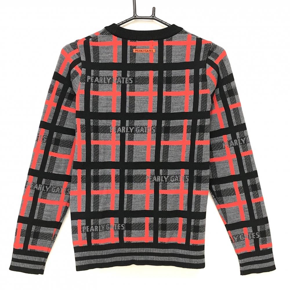 【超美品】パーリーゲイツ セーター 黒×グレー チェック ウール混 レディース 1(M) ゴルフウェア PEARLY GATES
