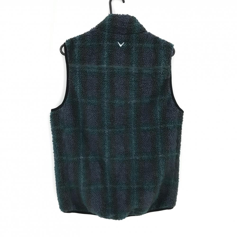 【美品】キャロウェイ ボアベスト グリーン×黒 チェック メンズ L ゴルフウェア Callaway