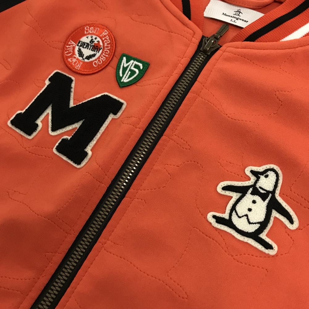 【超美品】マンシングウェア ジャケットブルゾン オレンジ×黒 異素材切替 レディース LL ゴルフウェア Munsingwear