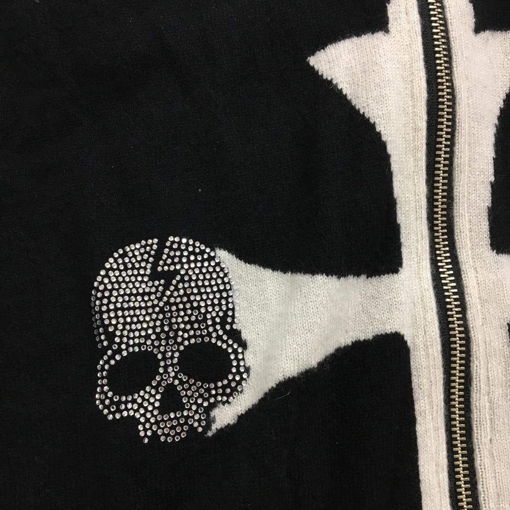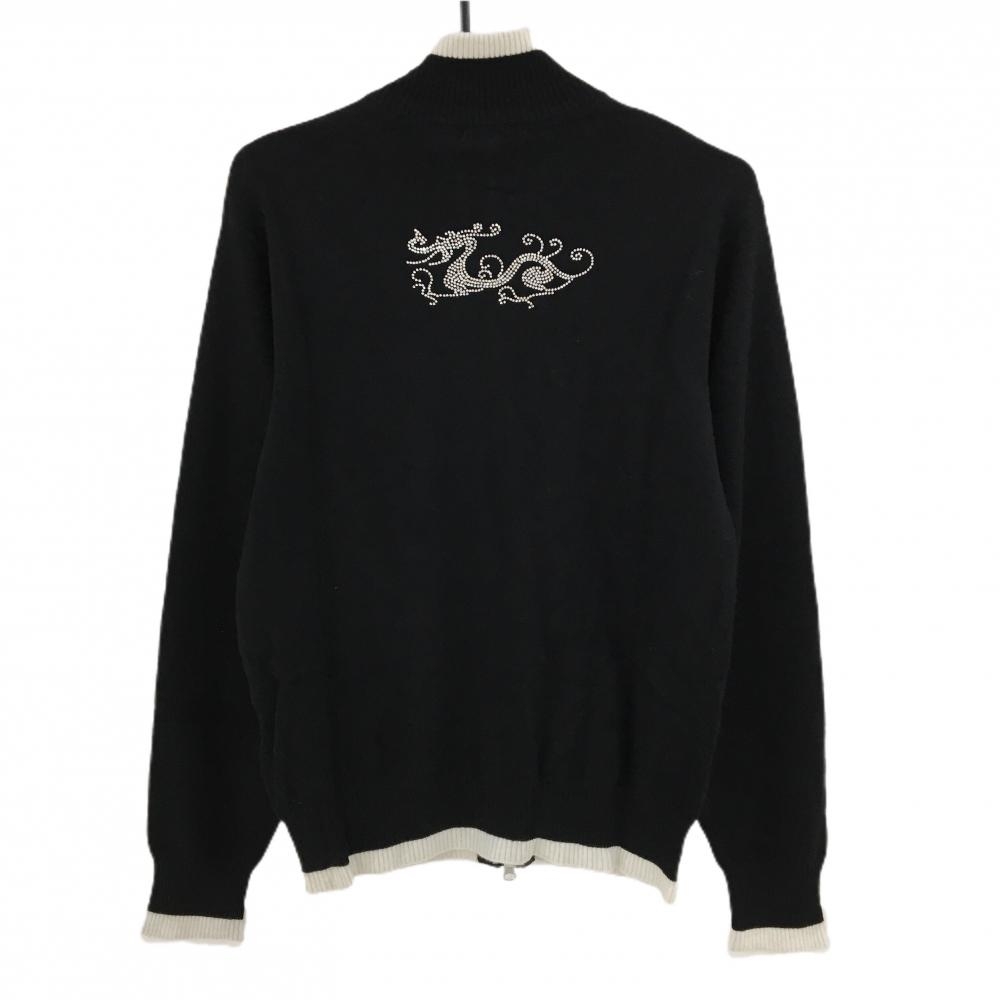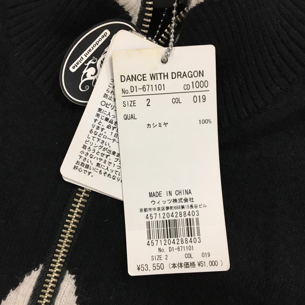 【新品】ダンスウィズドラゴン ニットジャケット 黒×白 スカル ラインストーン メンズ 2(M) ゴルフウェア Dance With Dragon