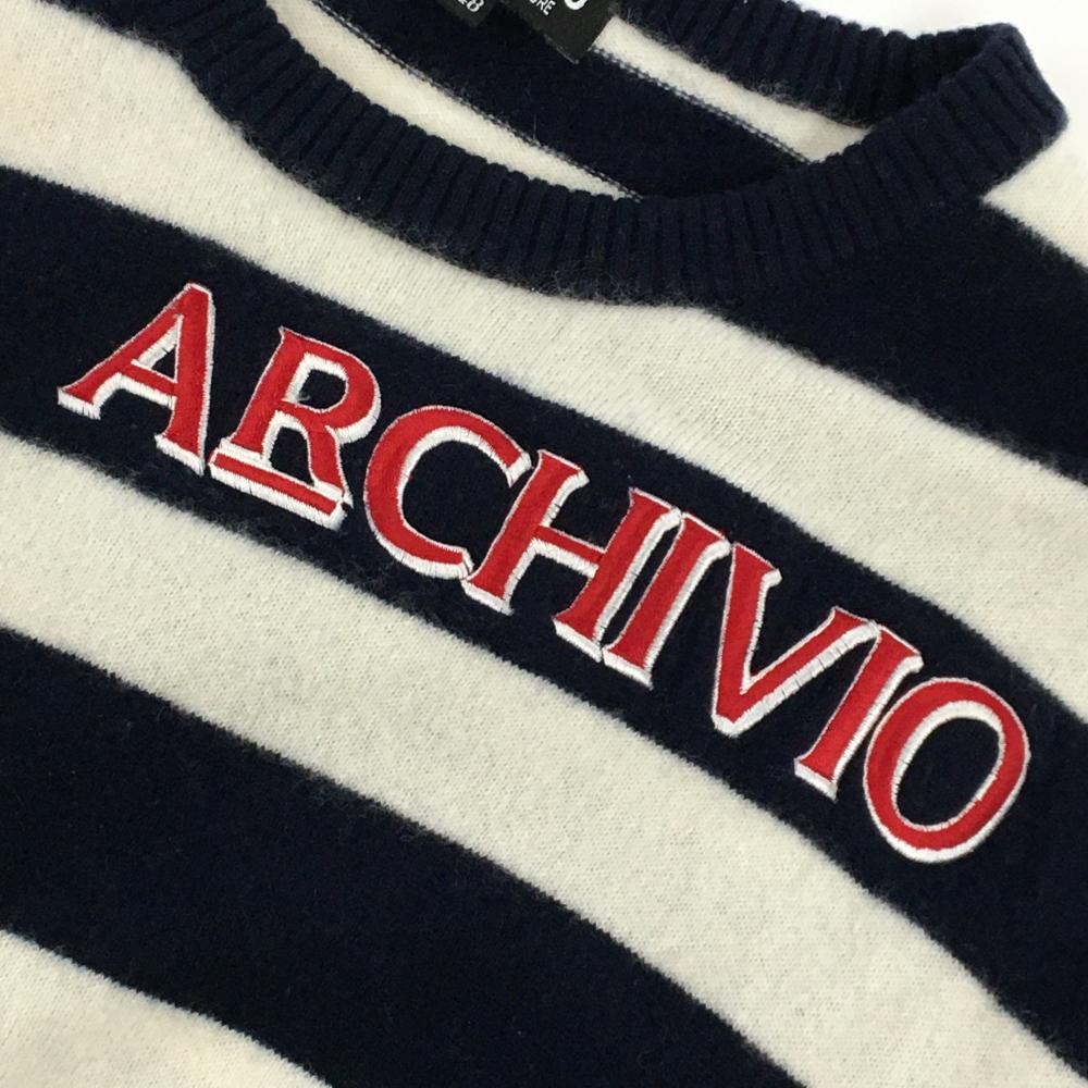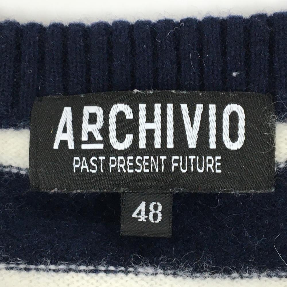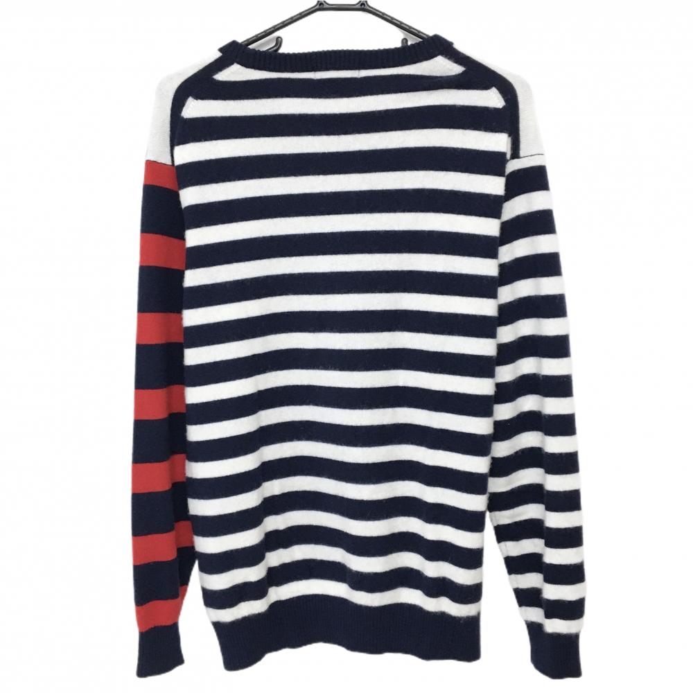 【美品】アルチビオ セーター ネイビー×白×レッド ボーダー カシミヤ100% ニット メンズ 48(L) ゴルフウェア archivio