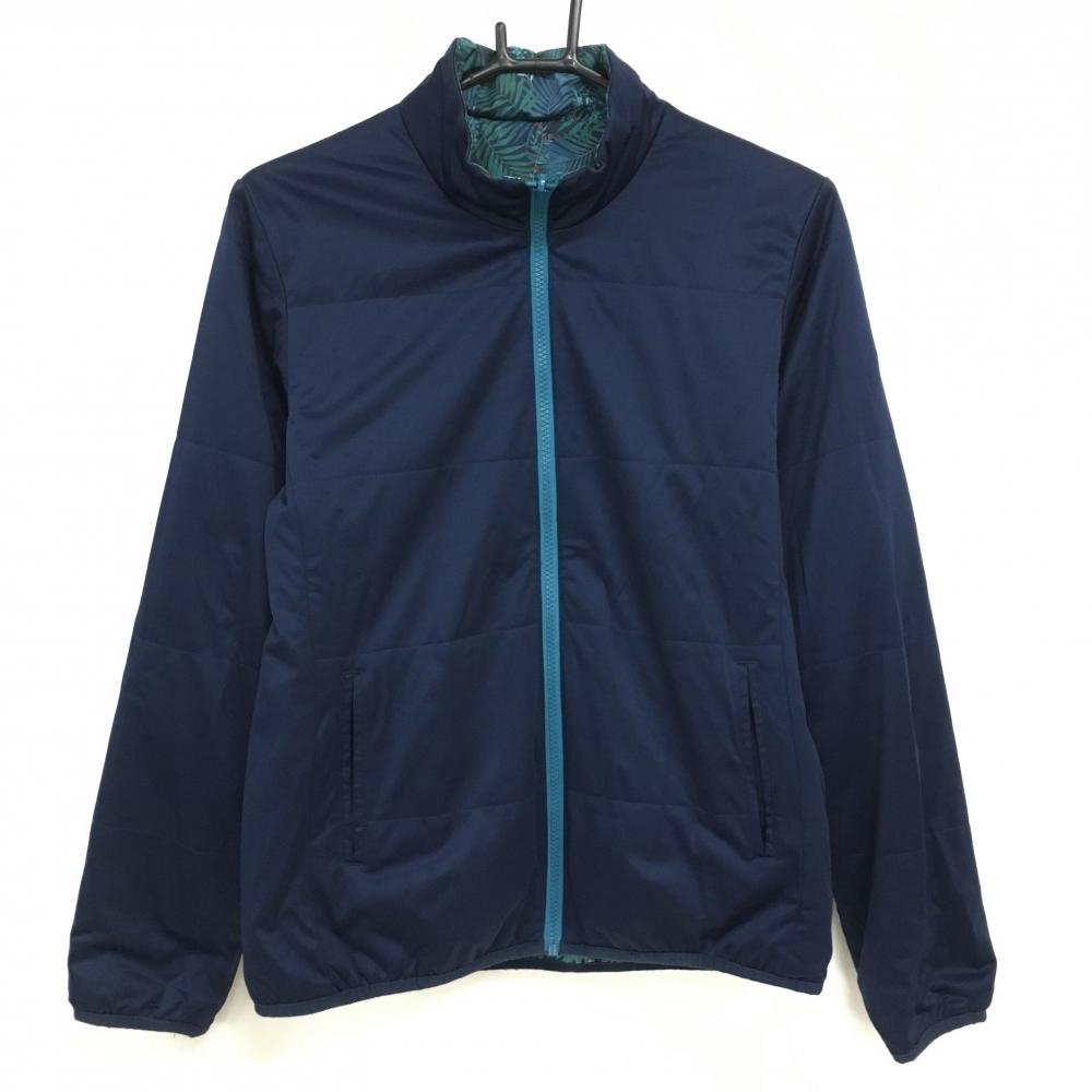 【超美品】パラディーゾ リバーシブル中綿ジャケット ネイビー×グリーン リーフ柄 片面ネイビー無地 レディース L ゴルフウェア Paradiso