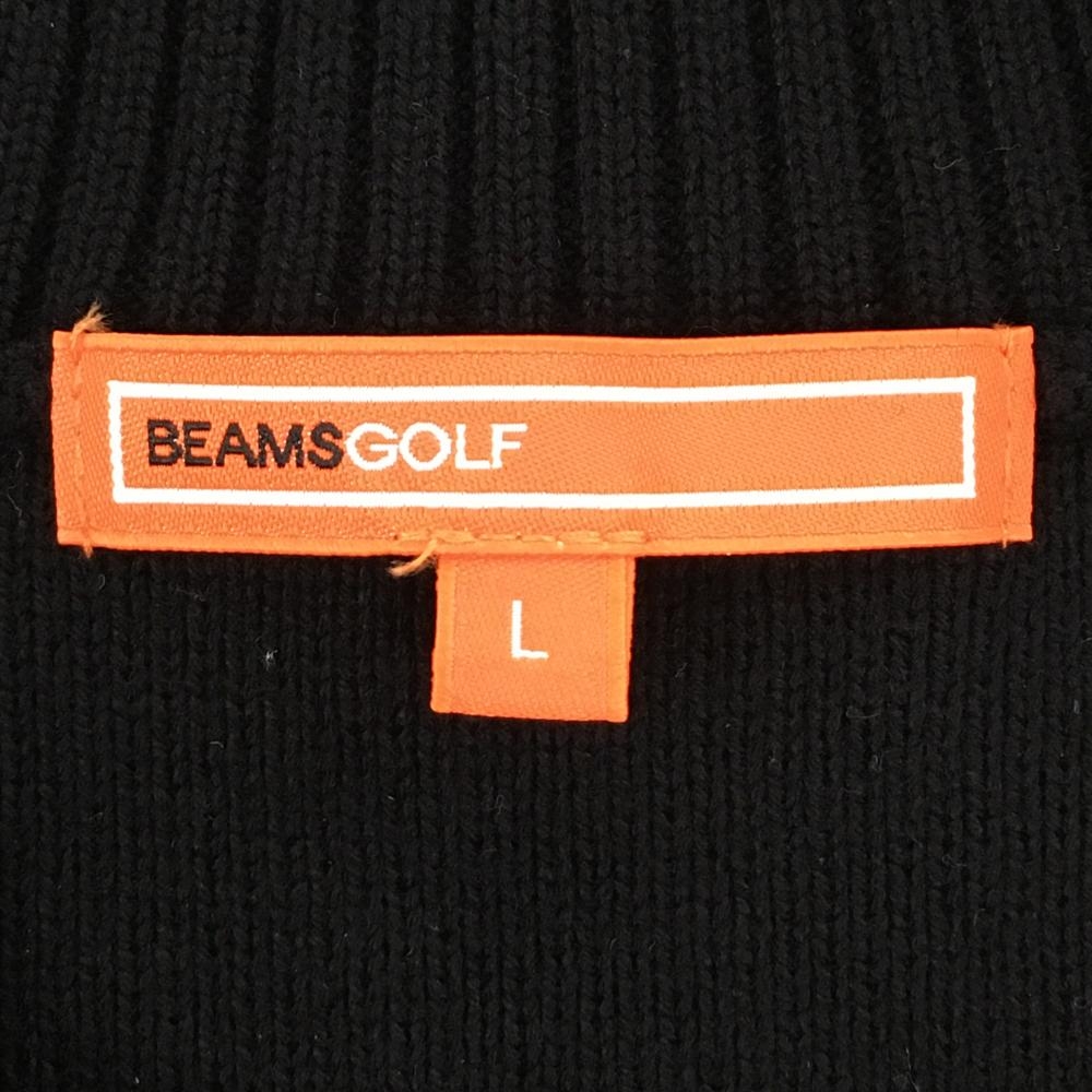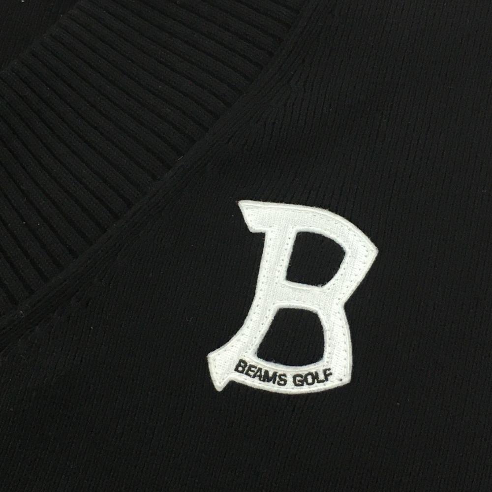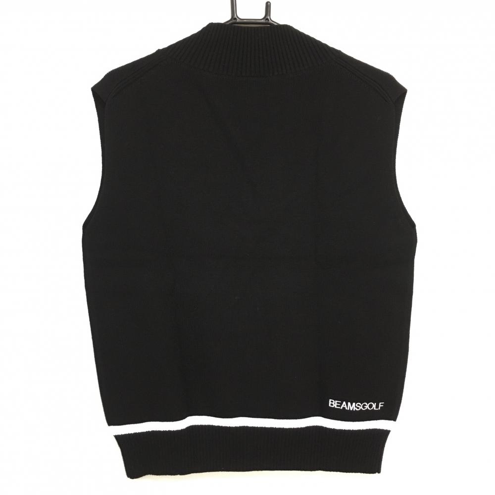 【美品】ビームスゴルフ ニットベスト 黒 ロゴ白 コットン混 レディース L ゴルフウェア 2024年モデル BEAMS GOLF