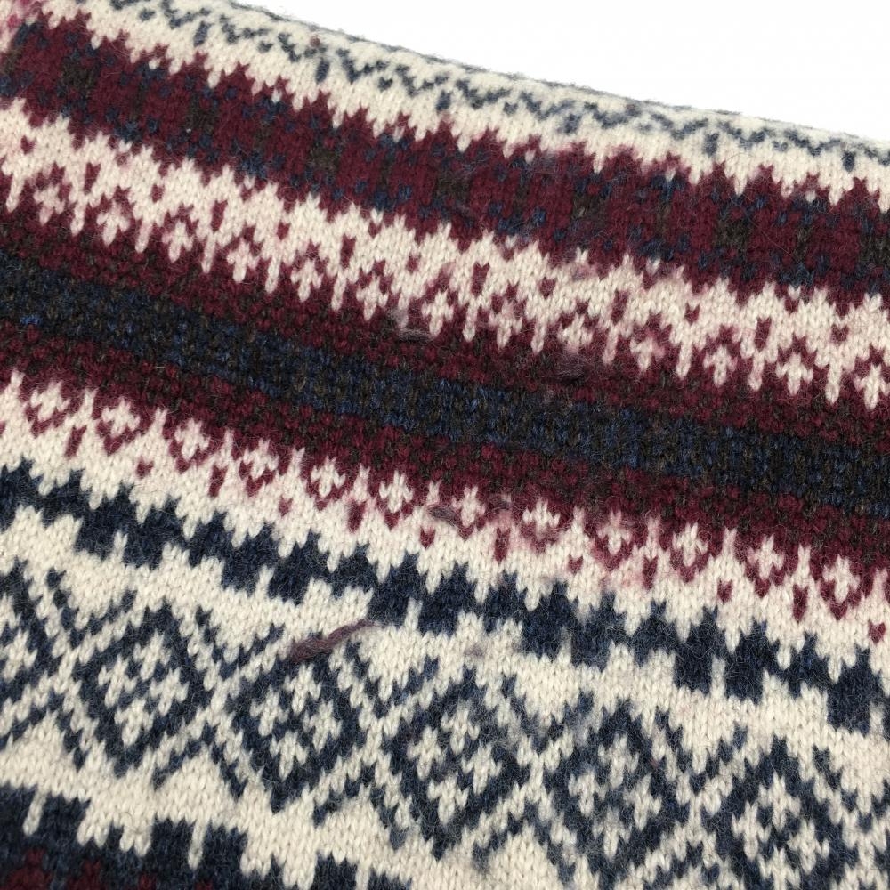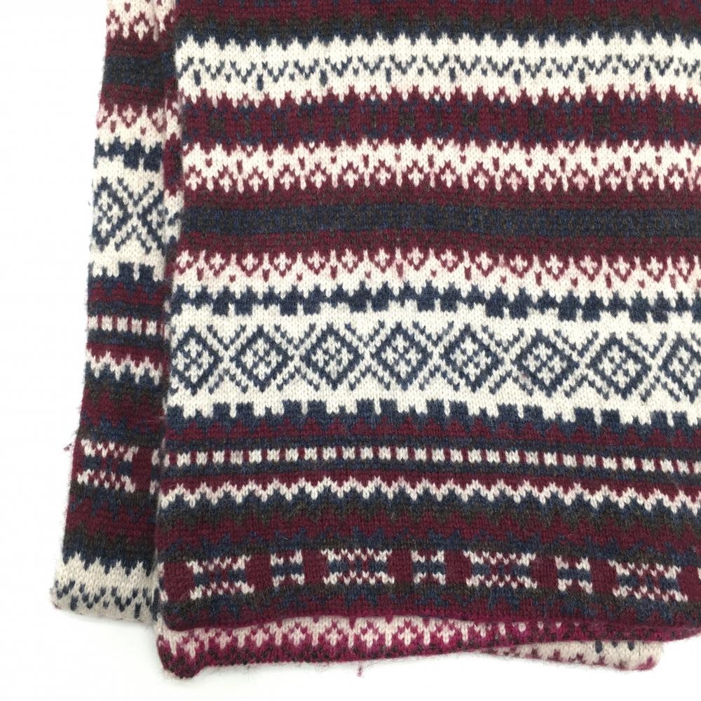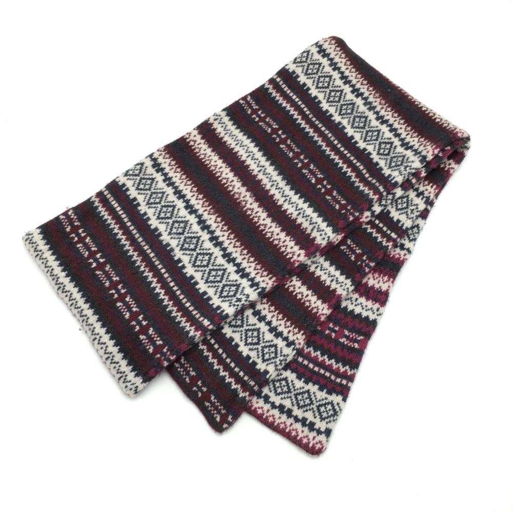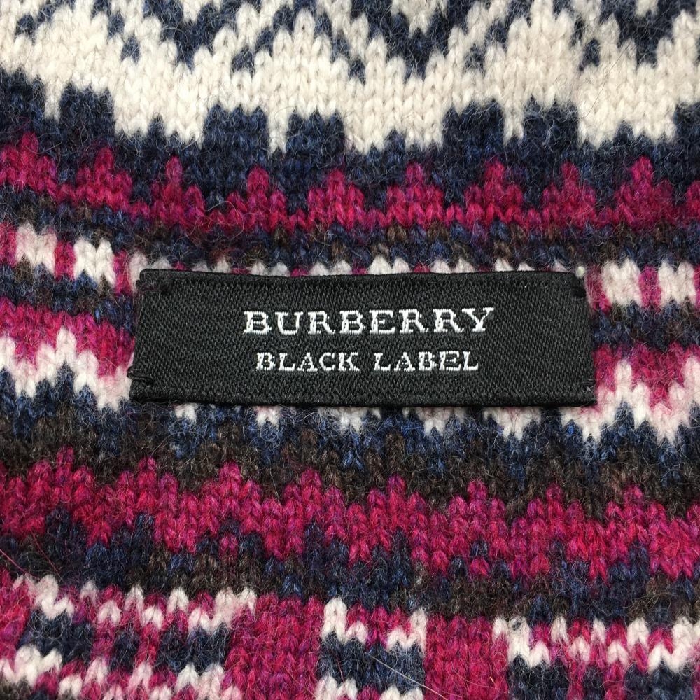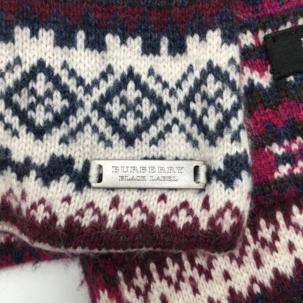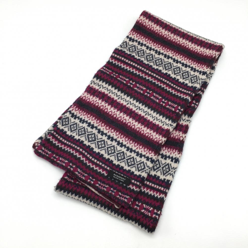 【美品】バーバリーブラックレーベル マフラー グレー×ボルドー×白 総柄 毛羽立ち少 ゴルフウェア BURBERRY GOLF