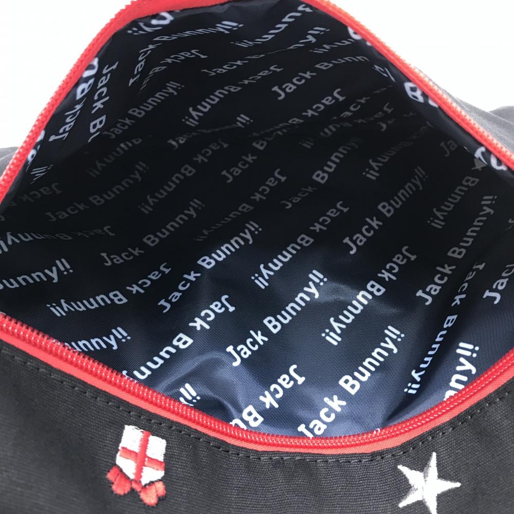 【新品】ジャックバニー ポーチ 黒×レッド×シルバー クリスマス刺しゅう総柄 ノベルティゴルフ Jack Bunny