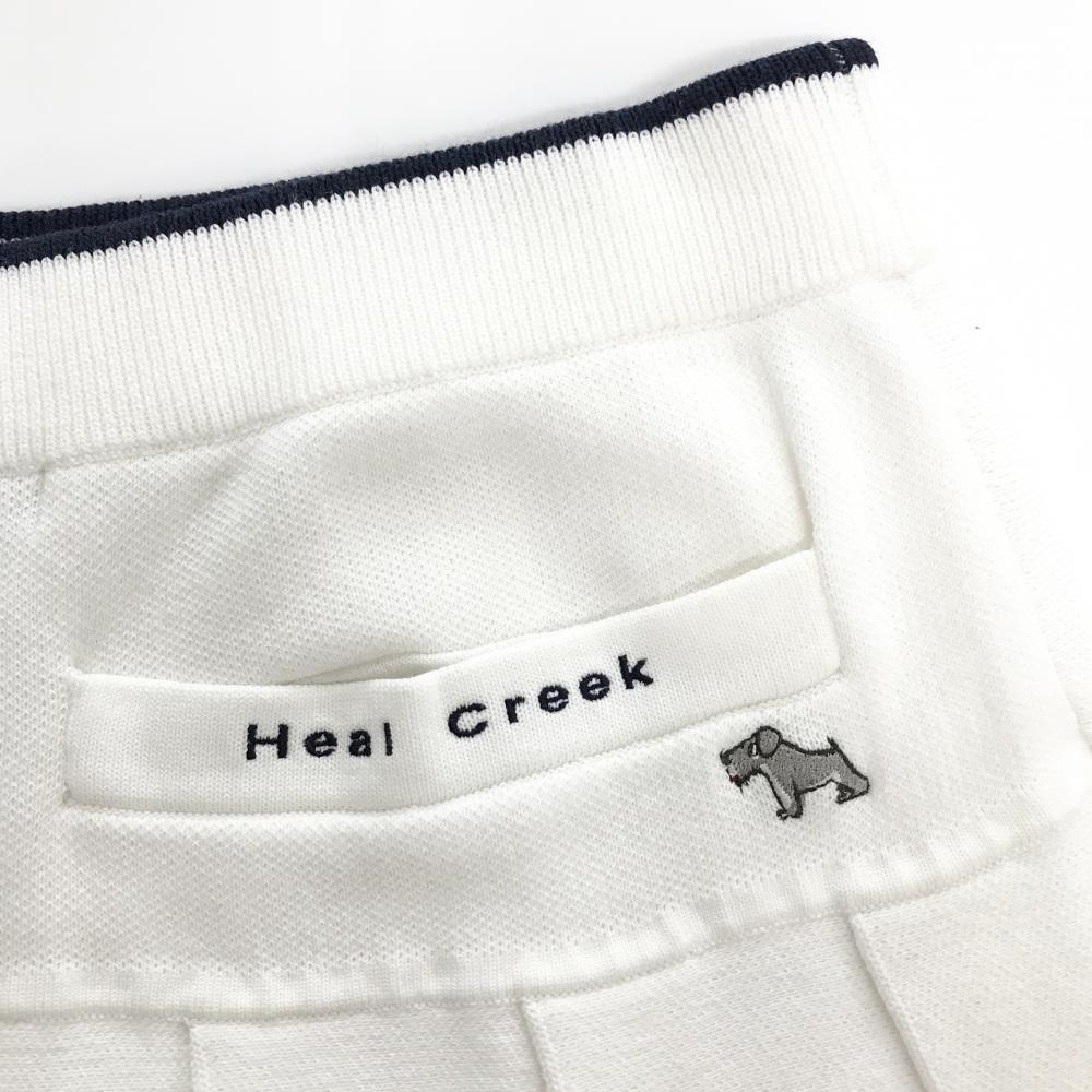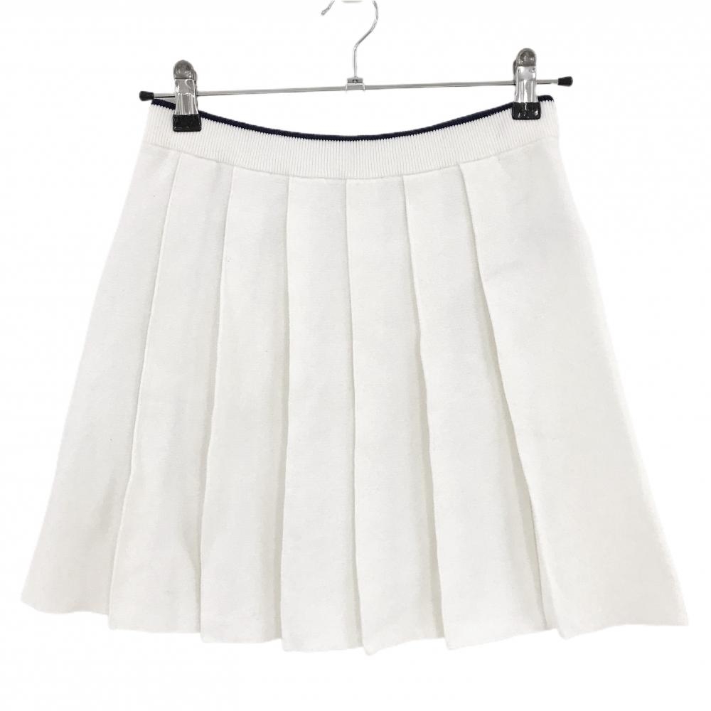 【超美品】ヒールクリーク ニットスカート 白×ネイビー プリーツ レディース 40(M) ゴルフウェア Heal Creek