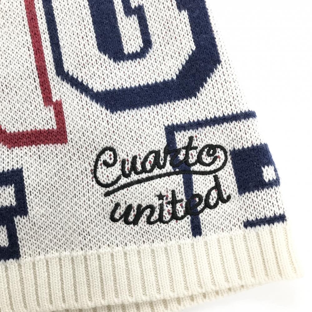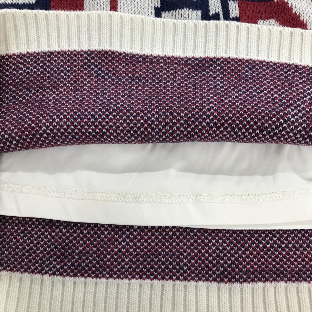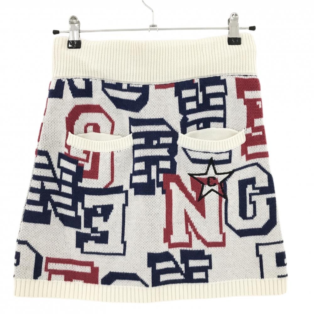 【超美品】クアルトユナイテッド ニットスカート アイボリー×ネイビー×レッド 英字柄 ウール混 レディース M ゴルフウェア CUARTO UNITED