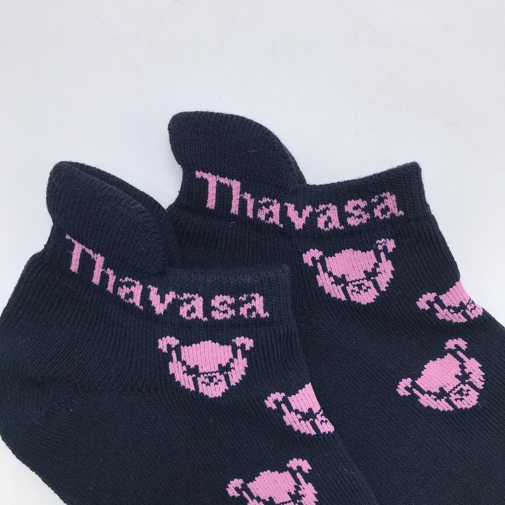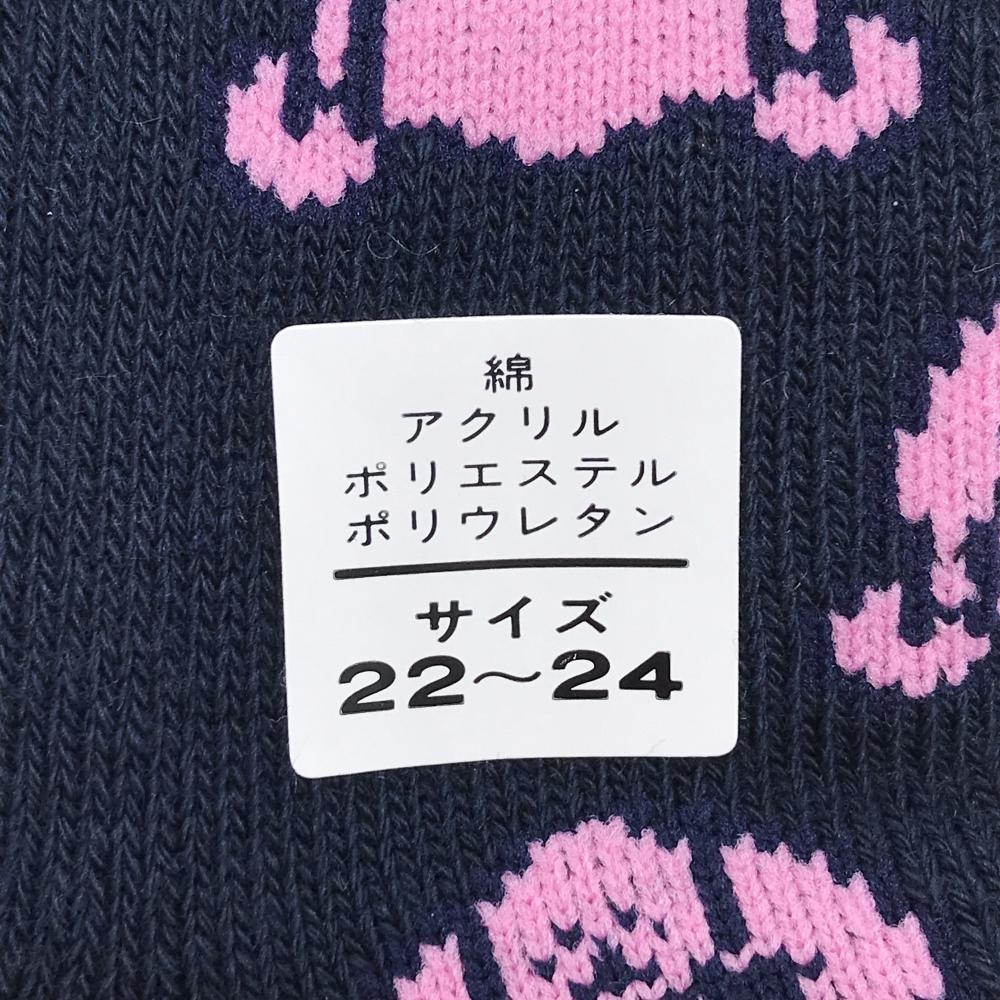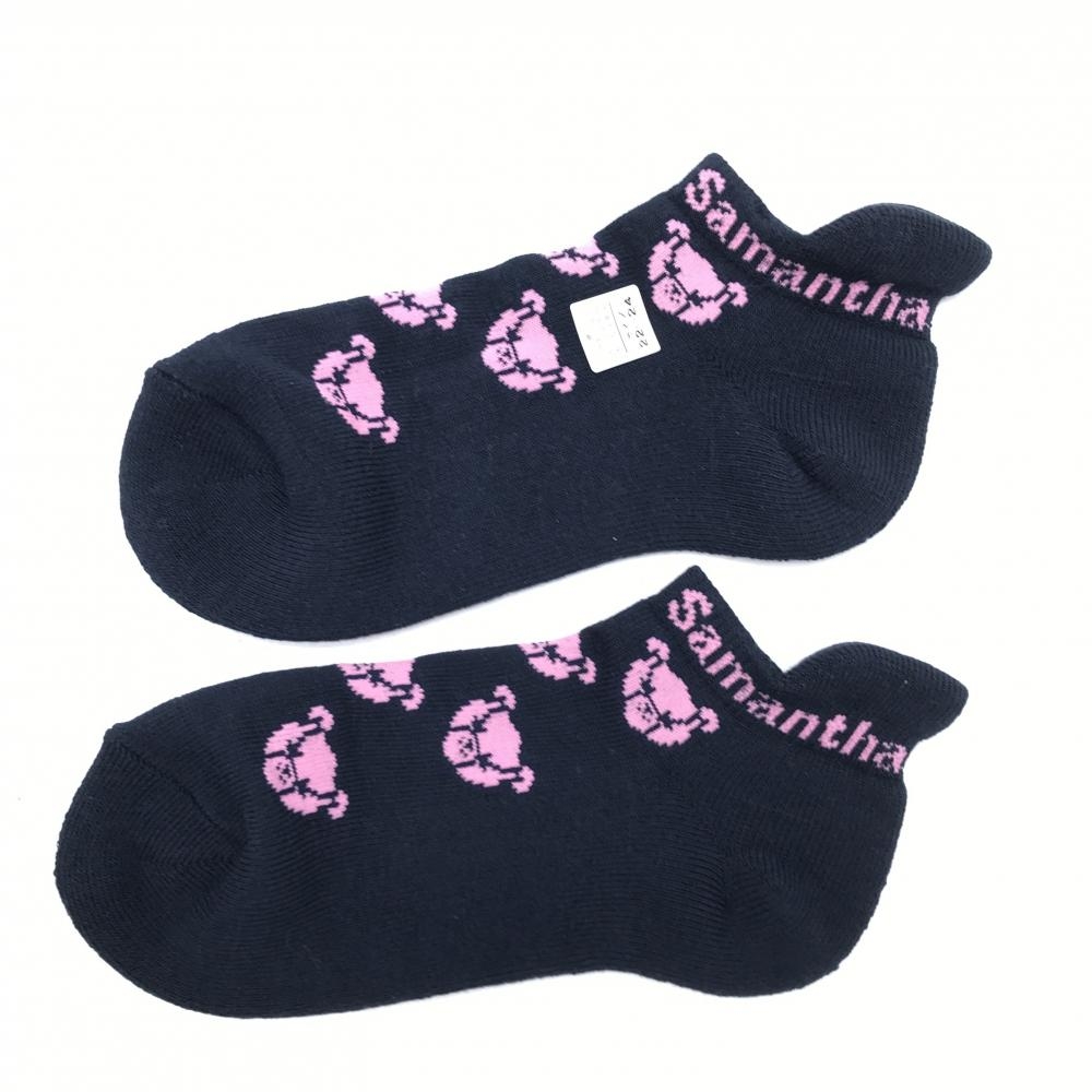 【未使用品】サマンサタバサ ソックス ネイビー×ピンク ベア柄 レディース 22-24cm ゴルフウェア Samantha Thavasa
