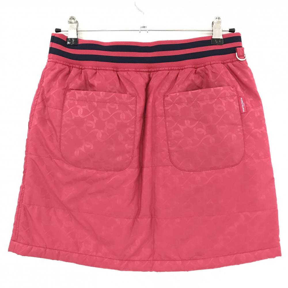 【超美品】マリクレールスポール 中綿スカート ピンク×ネイビー 総柄地模様 ウエストゴム レディース L ゴルフウェア marie claire