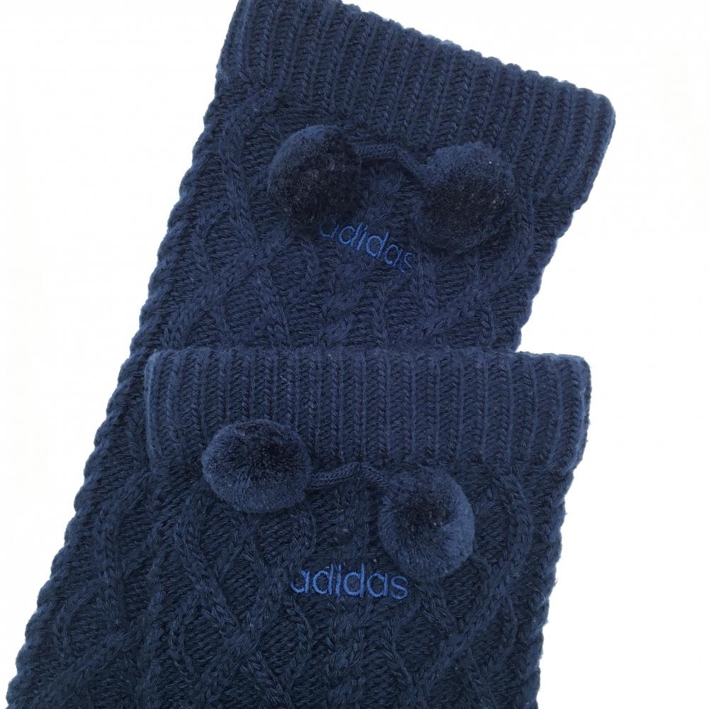 アディダス ニットレッグウォーマー ネイビー ボンボン付き ロゴ刺しゅう 毛羽立ち レディース ゴルフウェア adidas