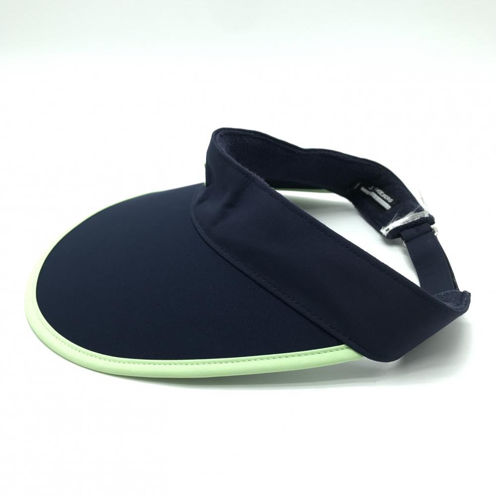 【美品】ジェイリンドバーグ つば広サンバイザー ネイビー×ライトグリーン系 レディース ONE SIZE ゴルフウェア J.LINDEBERG
