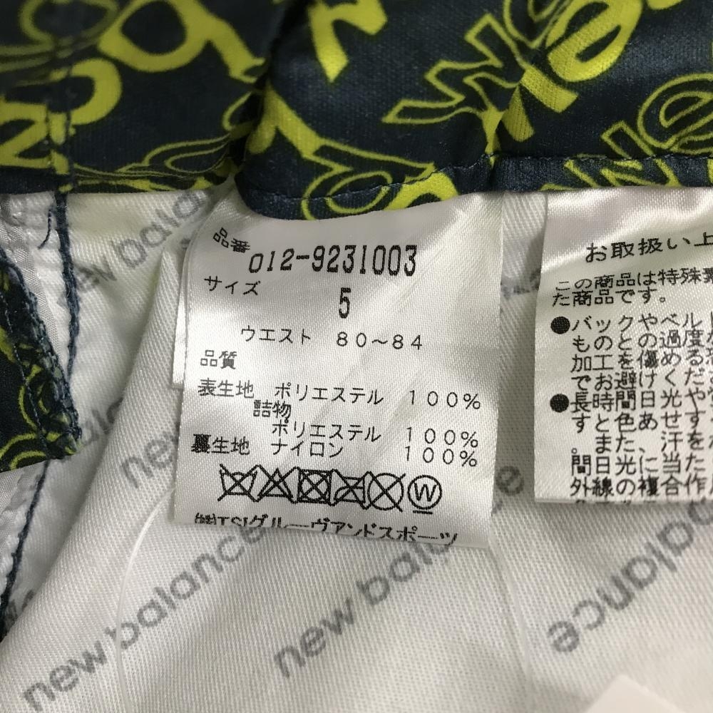 【超美品】ニューバランスゴルフ 中綿パンツ ネイビー×イエロー ロゴ総柄 メンズ 5(L) ゴルフウェア New Balance