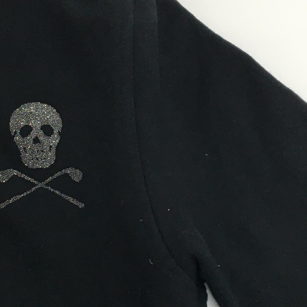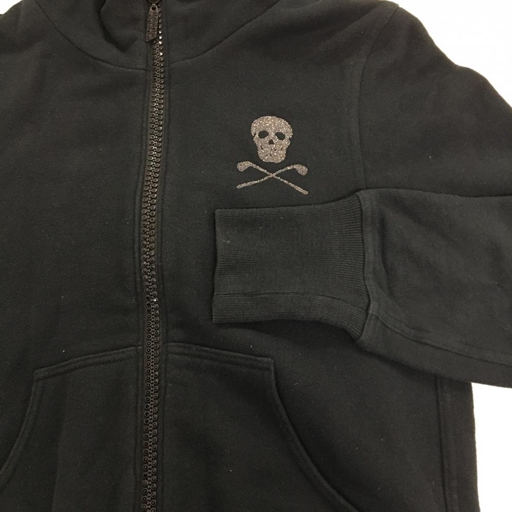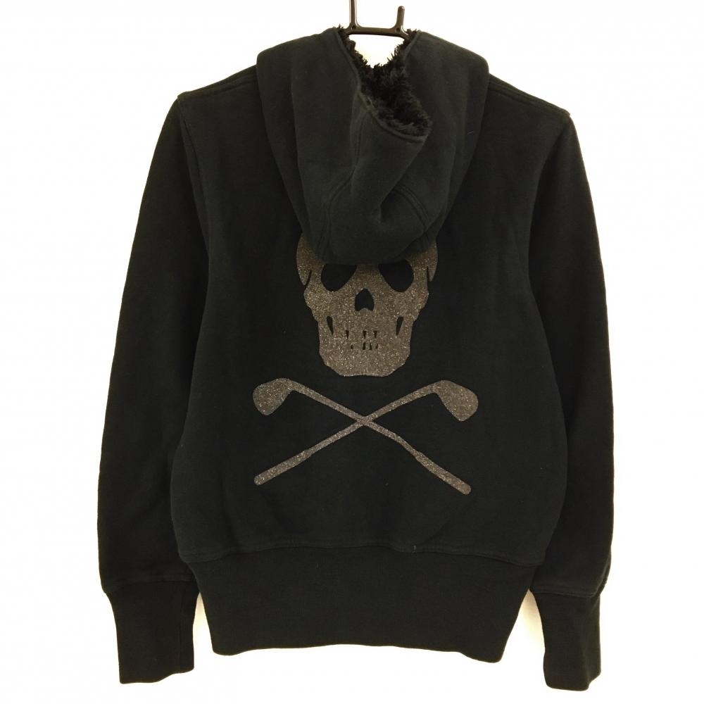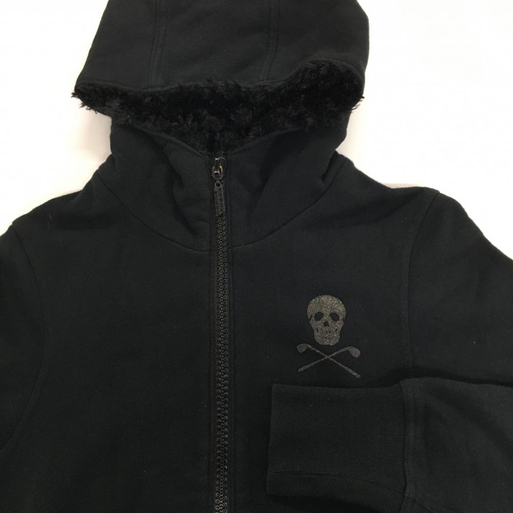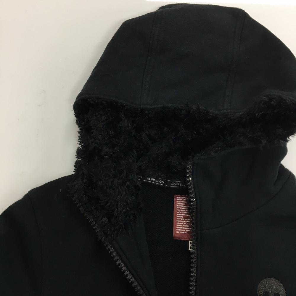 マークアンドロナ ジップパーカー 黒 フード内ボア 後ビッグスカル レディース S ゴルフウェア MARK&LONA