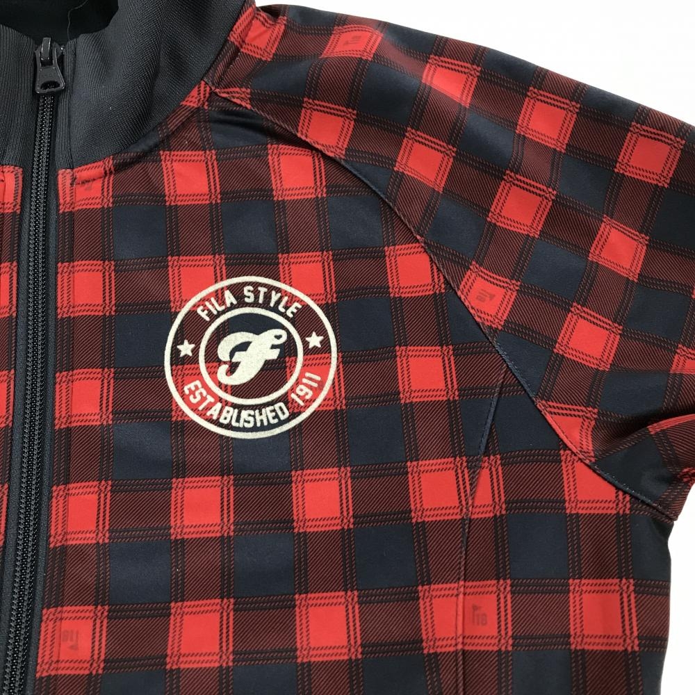 【超美品】フィラゴルフ ジャケットブルゾン レッド×ネイビー チェック 裏起毛 レディース M ゴルフウェア FILA GOLF