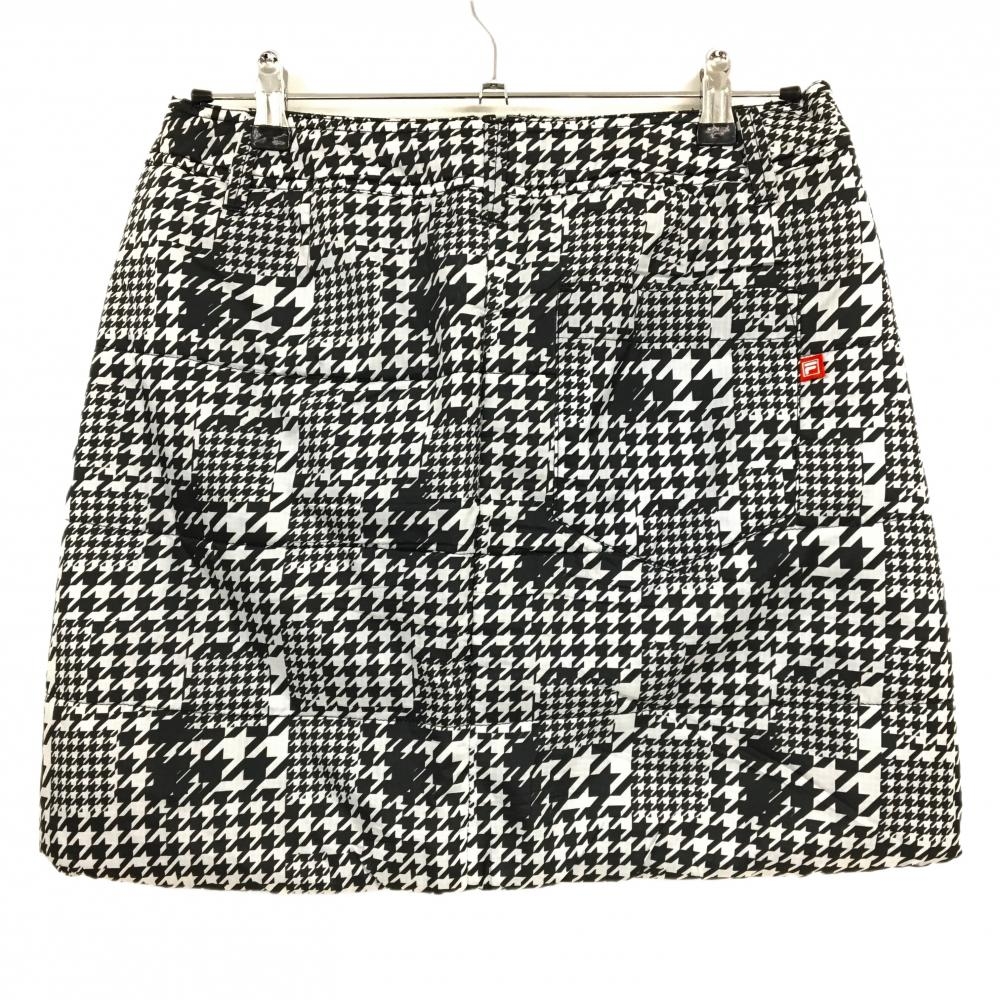 【超美品】フィラゴルフ 中綿スカート 黒×白 千鳥格子 フロントジップ レディース L ゴルフウェア FILA GOLF