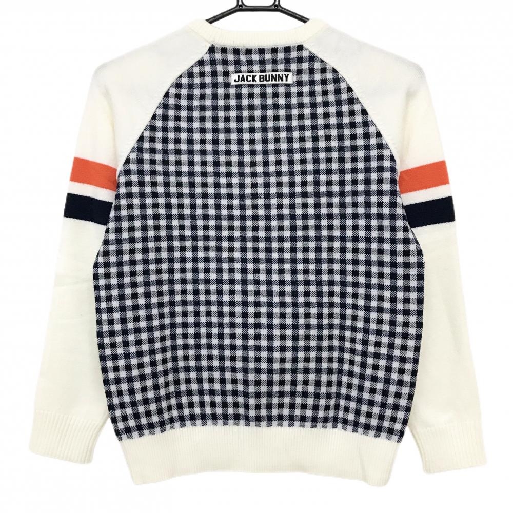 【美品】ジャックバニー セーター 白×黒×ネイビー 身頃チェック ニット レディース 0(S) ゴルフウェア Jack Bunny
