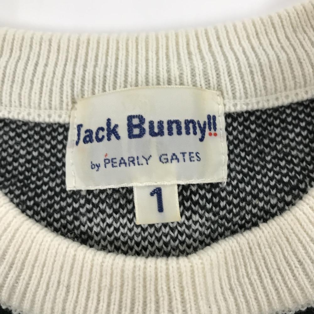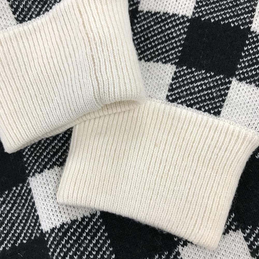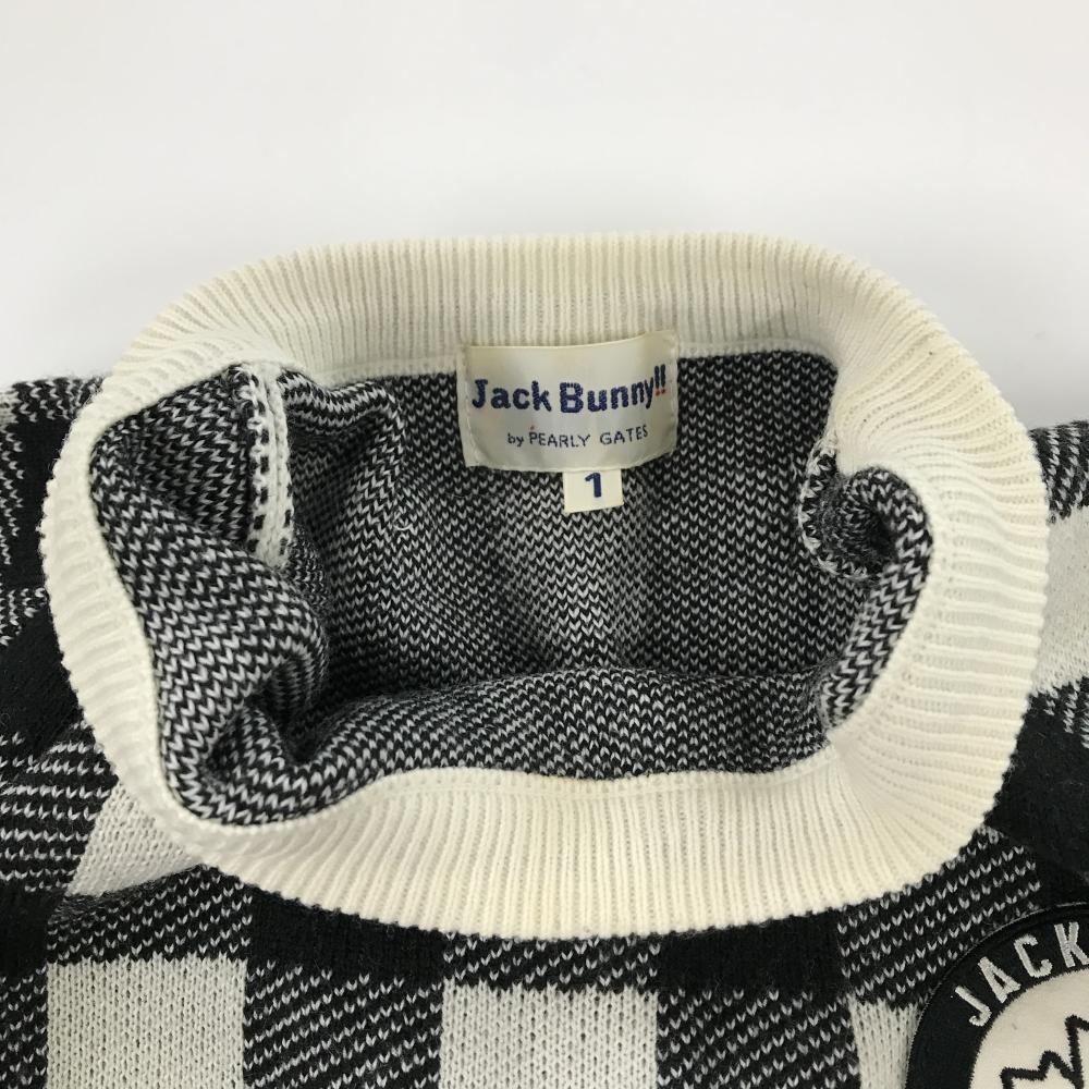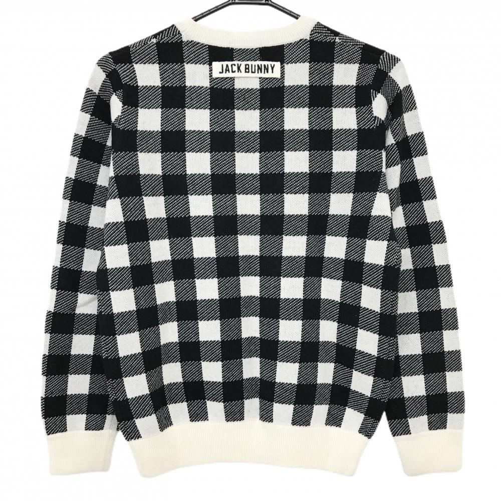 ジャックバニー セーター 白×黒 チェック ウール混 ニット レディース 1(M) ゴルフウェア Jack Bunny