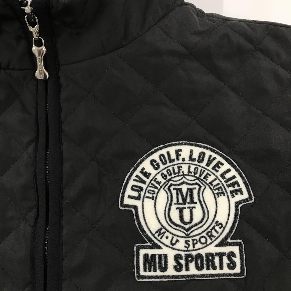 MUスポーツ 中綿ジャケット 黒×白 キルティング ワッペン レディース 42(L) ゴルフウェア M・U SPORTS