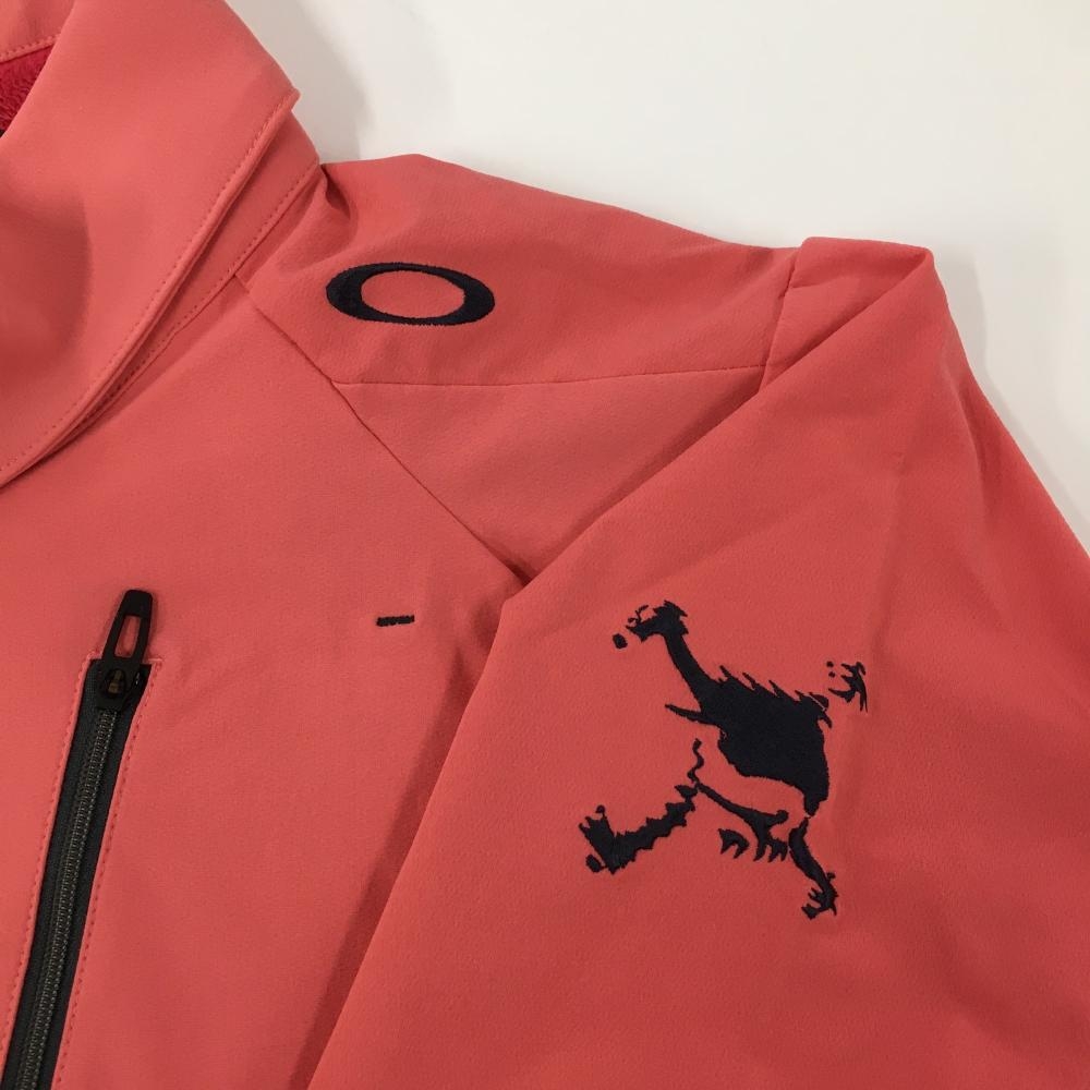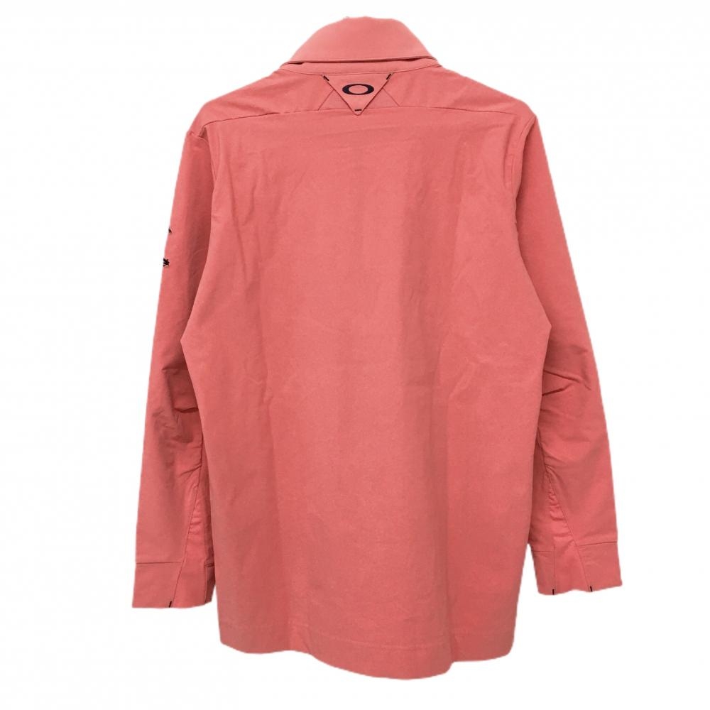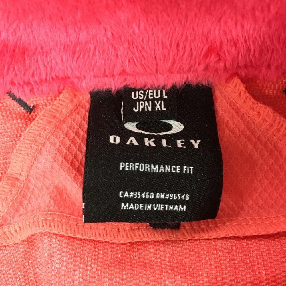 【美品】オークリー 長袖ポロシャツ ピンク系×黒 ハーフジップ 襟内側起毛 メンズ XL ゴルフウェア Oakley