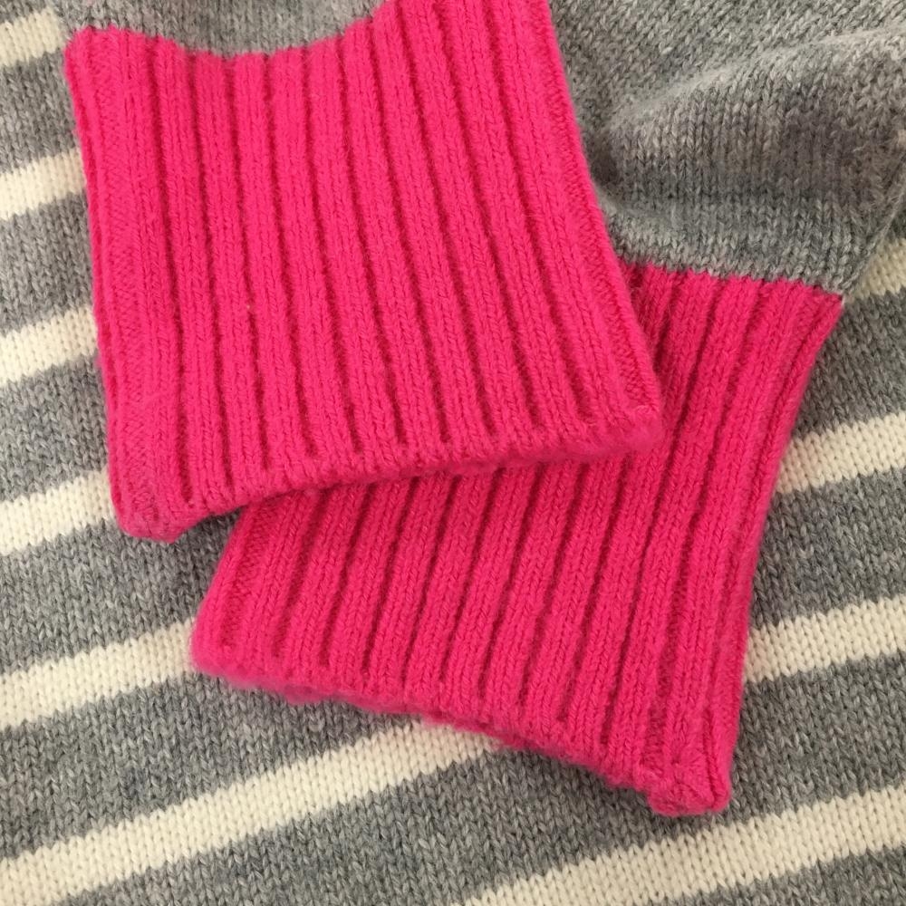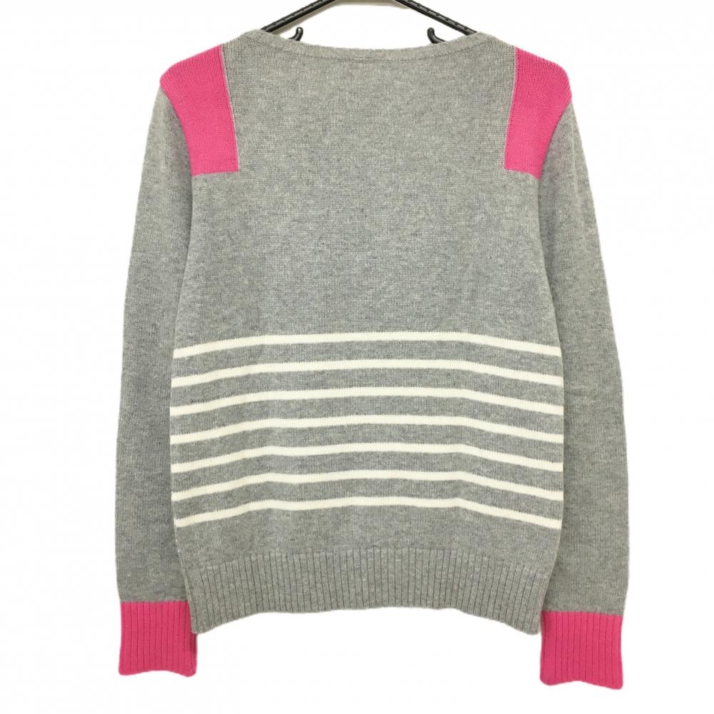 アルチビオ セーター ライトグレー×ピンク Vネック 裾ボーダー ニット レディース 38(M) ゴルフウェア archivio